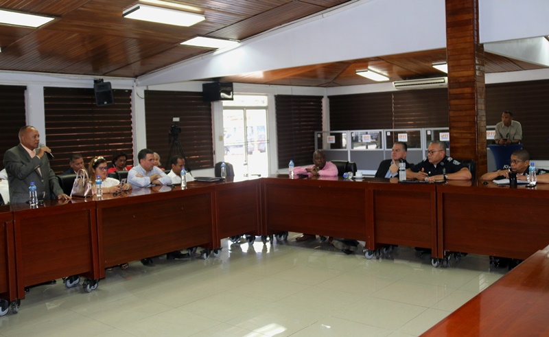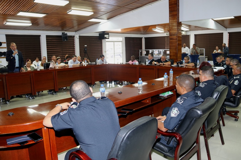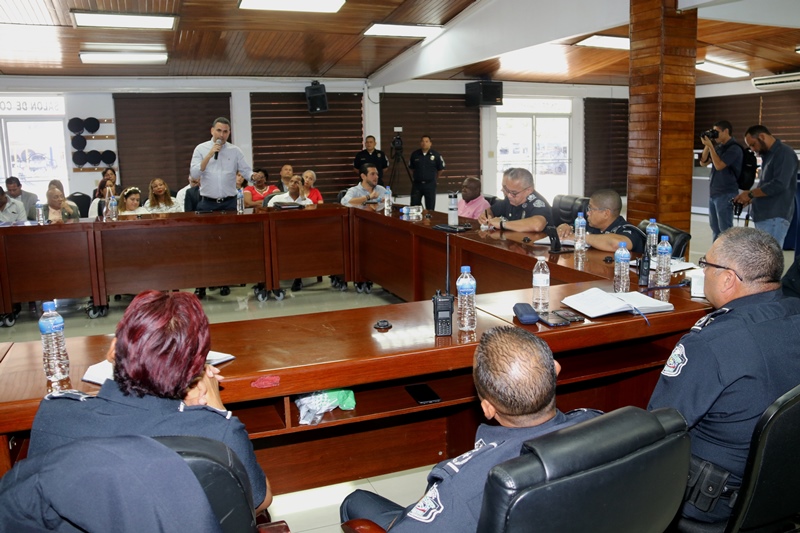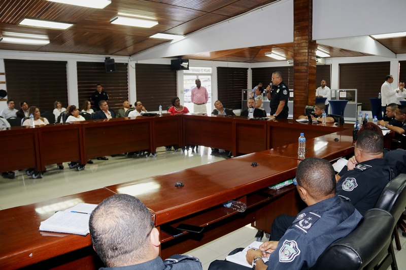 El director general de la Policía Nacional, Jorge Miranda Molina junto a miembros de directorio y jefes de zonas policiales, sostuvo una reunión con representantes de los corregimientos del distrito de Panamá, con miras a coordinar acciones conjuntas. En el encuentro que se realizó en el salón de reuniones de la sede de la Policía Nacional, en Ancón, los oficiales atendieron las inquietudes y recomendaciones de los ediles. “Somos de la comunidad y para comunidad” dijo el jefe policial, quien destacó la importancia de ser puentes y unir esfuerzos de manera armónica, a favor de los residentes de la urbe capitalina. Por su parte, el presidente del Consejo Municipal de Panamá, H.C. Carlos Pérez Herrera, agradeció al director general, Jorge Miranda Molina, por la labor realizada, reiterando el respaldo a las estrategias de seguridad. |