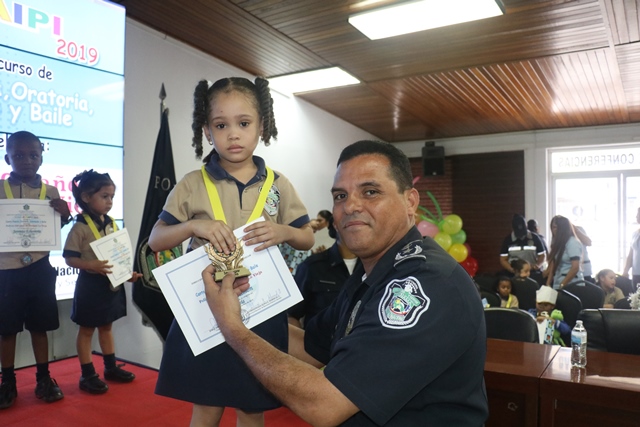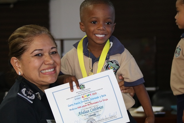 Los niños de los Centros de Atención Integral a la Primera Infancia (CAIPI), de la Policía Nacional demostraron su talento en el Inter-Caipi 2019, con el lema “Policía: 500 años de Panamá La Vieja”. En este evento cultural, que reúne a los pequeños que cursan estudios en los niveles de maternal, pre jardín y jardín, resultaron ganadoras las niñas Orys Hernández y Alisson Rodríguez, en las categoría oratoria y poesía respectivamente; ambas representantes del Caipi Mi Alegría de Veraguas. Por su parte, el pequeño Emmanuel Martínez, de Los Pininos Nueva Generación de La Chorrera se llevó el primer lugar en coloreado, mientras que en canto sobresalió Cristel Delgado, de la provincia de Veraguas. Luis Bonilla y Elkiriam Pineda, ambos del Caipi Mi Alegría de la provincia de Veraguas se llevaron el primer lugar en la categoría baile. “Este es el resultado del aprendizaje de los estudiantes y la labor de los docentes. Felicitamos a todos estos niños y niñas que son grandes ganadores cada uno en sus diferentes categorías”, dijo la comisionada Alina Mariscal, jefa de la Dirección Nacional de Bienestar Policial y Familiar. Mariscal destacó que con estos eventos se dota a los niños de las habilidades que le permitan desarrollar el lenguaje y otras facetas que potencien su talento. Al final de este concurso los niños fueron premiados con medallas, certificados y regalos por su destacada participación. |