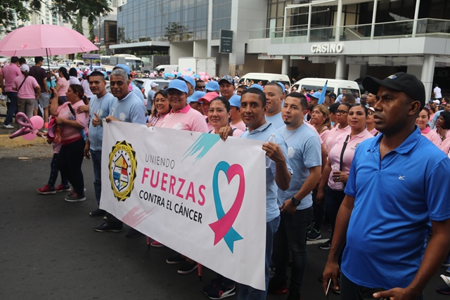 Bajo el lema "Uniendo fuerzas contra el cáncer", nuestro equipo de uniformados y miembros no juramentados, participó en la caminata en apoyo a la Campaña de la Cinta Rosada y Celeste. El evento organizado por el Despacho de la Primera Dama, Yazmín Colón de Cortizo contó con la asistencia de instituciones gubernamentales y organizaciones privadas. Con pancartas alusivas, el recorrido inició en el Centro de Convenciones Atlapa hasta el Parque Recreativo Omar, donde se presentaron bandas musicales y animaciones infantiles. “Nos unimos a esta campaña exhortando a los ciudadanos a realizarse las pruebas a tiempo", dijo el subdirector general, Alexis Muñoz, quien encabezó la delegación de la institución. Cada año la Policía Nacional se une a la cruzada que salva vidas, con acciones para crear conciencia en la población panameña sobre el tema. |