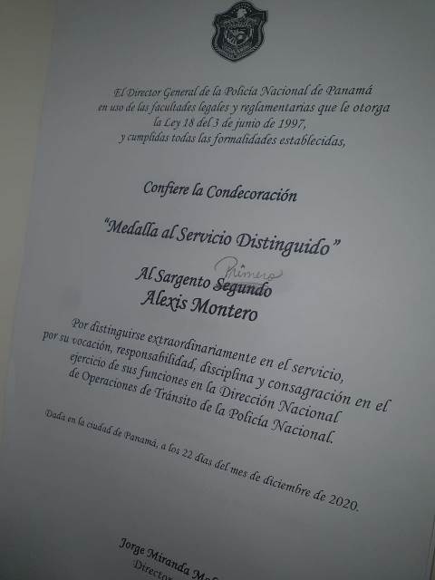 El Director General de la Policía Nacional Jorge Miranda Molina, el Subdirector Alexis Muñoz, y el Director Nacional de Operaciones de Tránsito Simón Henríquez, reconocieron el sacrificio, la vocación de servicio, y el hacer la diferencia de dos unidades policiales pertenecientes a la Dirección Nacional de Operaciones de Tránsito ellos son el Sargento 1° Alexis Montero, y la Cabo 1° Cindy Batista.