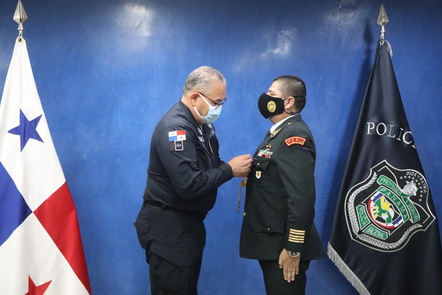 Esta mañana, el Director General de la Policía Nacional, Jorge Miranda Molina condecoró al General Zenón Santos Loaysadiaz y al Comandante Jorge Luis Amado Quevedo, de la Policía de Perú quienes culminaron su misión diplomática en nuestro país.