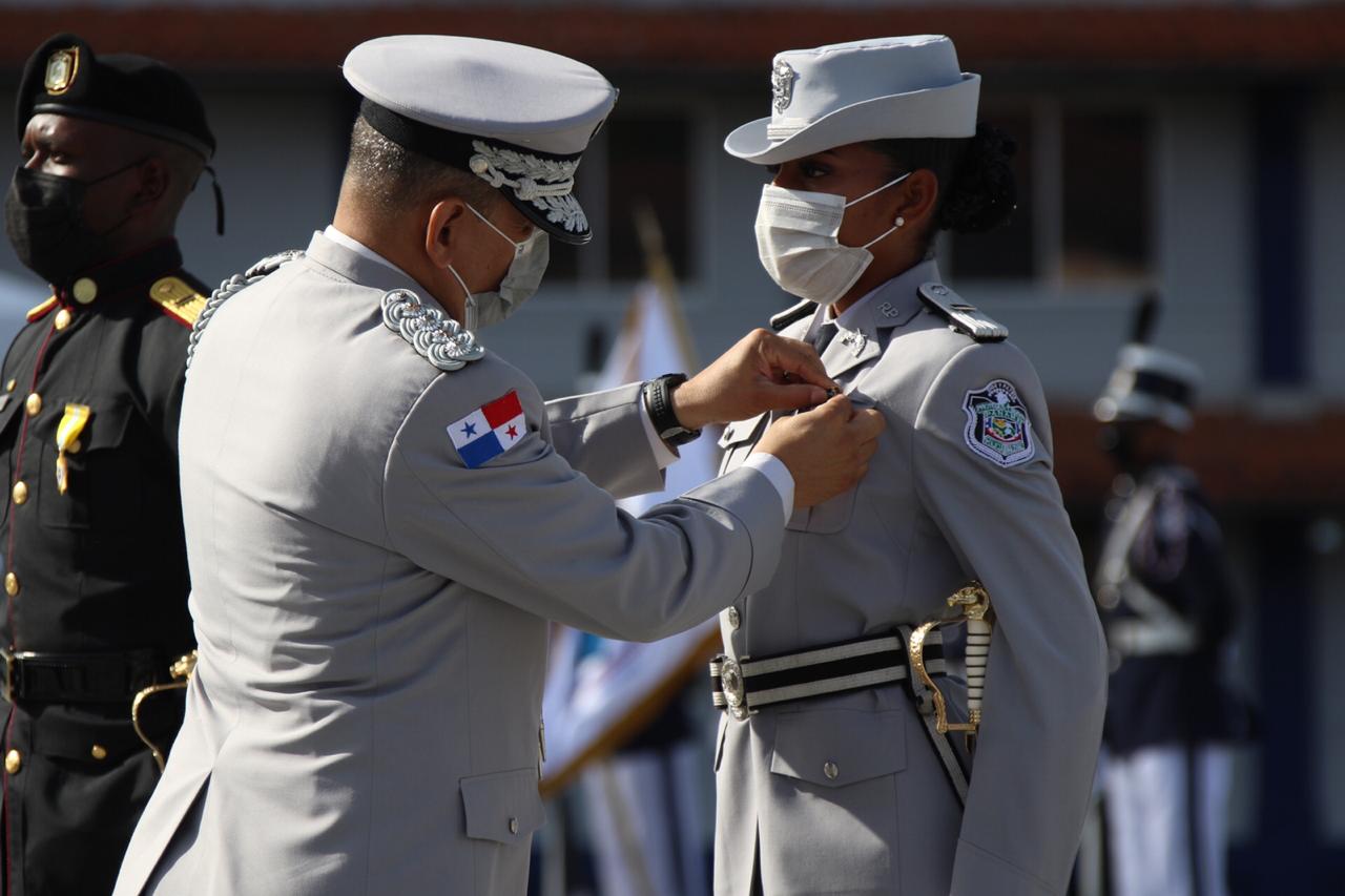 Un total de 137 Subtenientes de la Promoción XX que lleva por nombre “General Victoriano Lorenzo” de la Escuela de Oficiales de Policía Dr. Justo Arosemena, se convirtieron en nuevos oficiales al servicio de la nación tras una ceremonia celebrada en la provincia de Colón. “Como oficiales tienen el enorme reto de guiar a sus subalternos con principios, valores y virtudes que serán acrecentando con la experiencia de años de servicio, llegaran a comprender que la autoridad no se obtiene con el rango o el cargo; sino con la moral integridad, rectitud y el trabajo hombro a hombro junto a la tropa con el ejemplo “expresó el presidente de la República Laurentino Cortizo Cohen quien presidió este acto. Los tres primeros puestos de Honor Integral fueron: los subtenientes Mario Archibold del Servicio de Protección Institucional, Zury Mackenzie de Policía Nacional y Marta Mojica, Policía Nacional recibieron la Medalla de Condecoración Dr. Justo Arosemena. El Director General de la Policía Nacional, Gabriel Medina Delgado, instó a los nuevos oficiales a desempeñar su labor con responsabilidad, disciplina y compromiso institucional. Los egresados de esta vigésima promoción están conformada por 25 femeninas y 112 masculinos del Servicio de Protección Institucional, del Servicio Nacional Aeronaval, del Servicio Nacional de Fronteras y 2 de República Dominicana. Además de 46 oficiales egresados de escuelas de países amigos como Uruguay, Chile, El Salvador, Argentina, Colombia, Paraguay, Honduras, República Dominicana y Perú. |