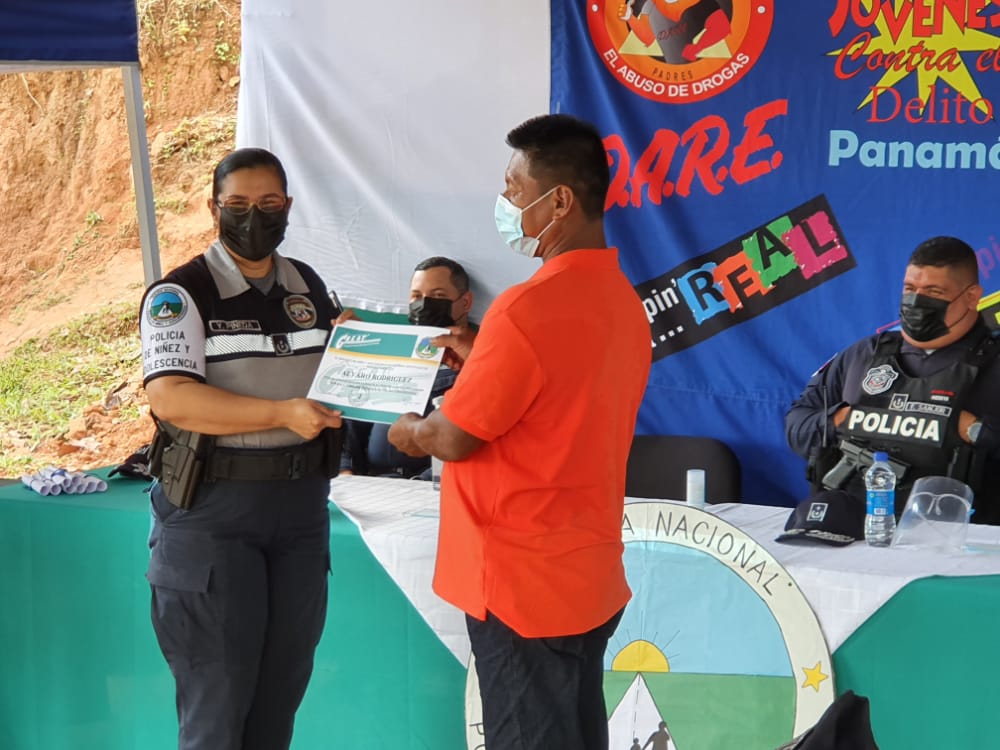 Mes y medio en constante capacitación para decir no a las pandillas y si a los valores y principios, unas 22 personas entre niños, niñas, adolescentes y adultos del sector Altos de Pedregal, en Rana de Oro, recibieron de manos de las unidades del Servicio de Policía de Niñez y Adolescencia de la Policía Nacional sus certificados de culminación de curso del programa GREAT, Familia (Educación y Entrenamiento en Resistencia a las Pandillas) por sus siglas en español. La subcomisionada Yesenia Pineda jefa del Servicio de Policía de Niñez y Adolescencia de la Policía Nacional dijo “Aquí estamos para apoyarlos, este programa va dirigido a niños y padres de familia, que busca una mejor comunicación entre padre e hijos, resolver situaciones cambios positivos en sus vidas, y en la toma de decisiones acertadas ante la presión de grupo”, acotó Las familias que se graduaron del primer curso Great Familia, 2021 mostraron su agradecimiento y el interés que sienten por ser tomados en cuenta, debido a las áreas recónditas y vulnerables del país donde llegan las unidades policiales a impartir sus clases y compartir con ellos. |