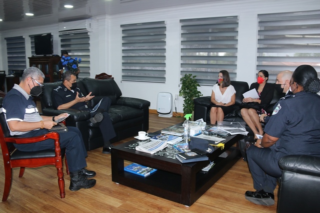 El Oficial de enlace Dominic Duchesneau, de la Policía Real Montada de Canadá, visitó las instalaciones de la Policía Nacional, donde fue recibido por el Director General Gabriel Medina. |