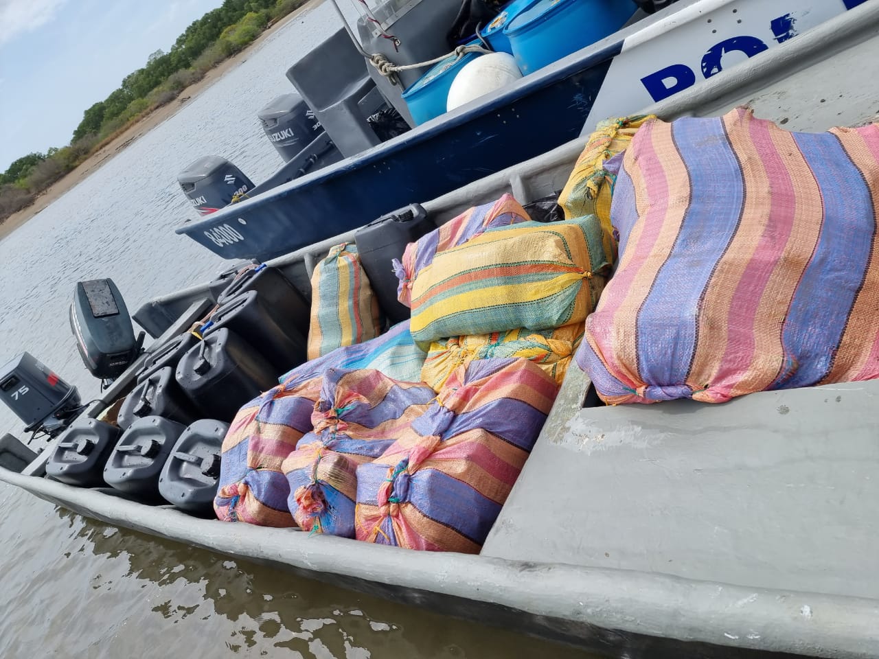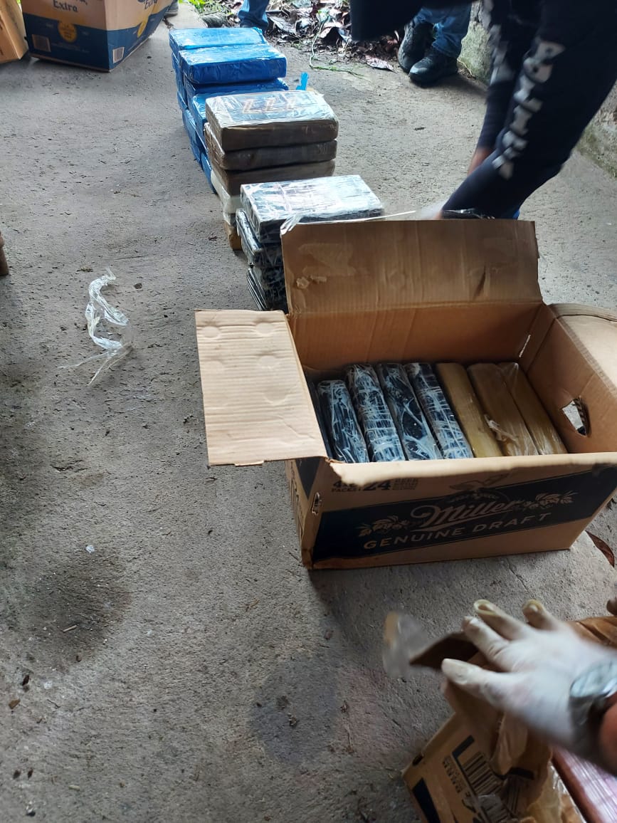 Un total de 967 paquetes con presunta droga, fueron incautados este jueves por la Policía Nacional, durante acciones de inteligencia realizadas en las provincias de Los Santos y Chiriquí. La primera incautación se llevó a cabo a diez millas de Punta Mala, distrito de Pedasí, con la interdicción de una lancha en la cual se contabilizaron 24 sacos, dentro de los cuales se ubicaron 919 paquetes con narcóticos. A bordo de la embarcación se aprehendieron a dos ciudadanos extranjeros de 40 y 20 años de edad respectivamente. En tanto, acciones simultáneas contra este flagelo se realizaban en una galera del sector el Exquisito Arriba, corregimiento de Aserrío, provincia de Chiriquí. Cuatro cajas de cartón con 48 paquetes contentivos de presuntas sustancias ilícitas, fueron ubicadas en coordinación con el Ministerio Público, entre sacos de caña picada. Por este ilícito fue detenido un hombre de 52 años de edad. La Policía Nacional realiza constantes recorridos preventivos en todo el territorio panameño, mediante patrullajes marítimos y terrestres con miras a prevenir y contrarrestar el trasiego de drogas. |