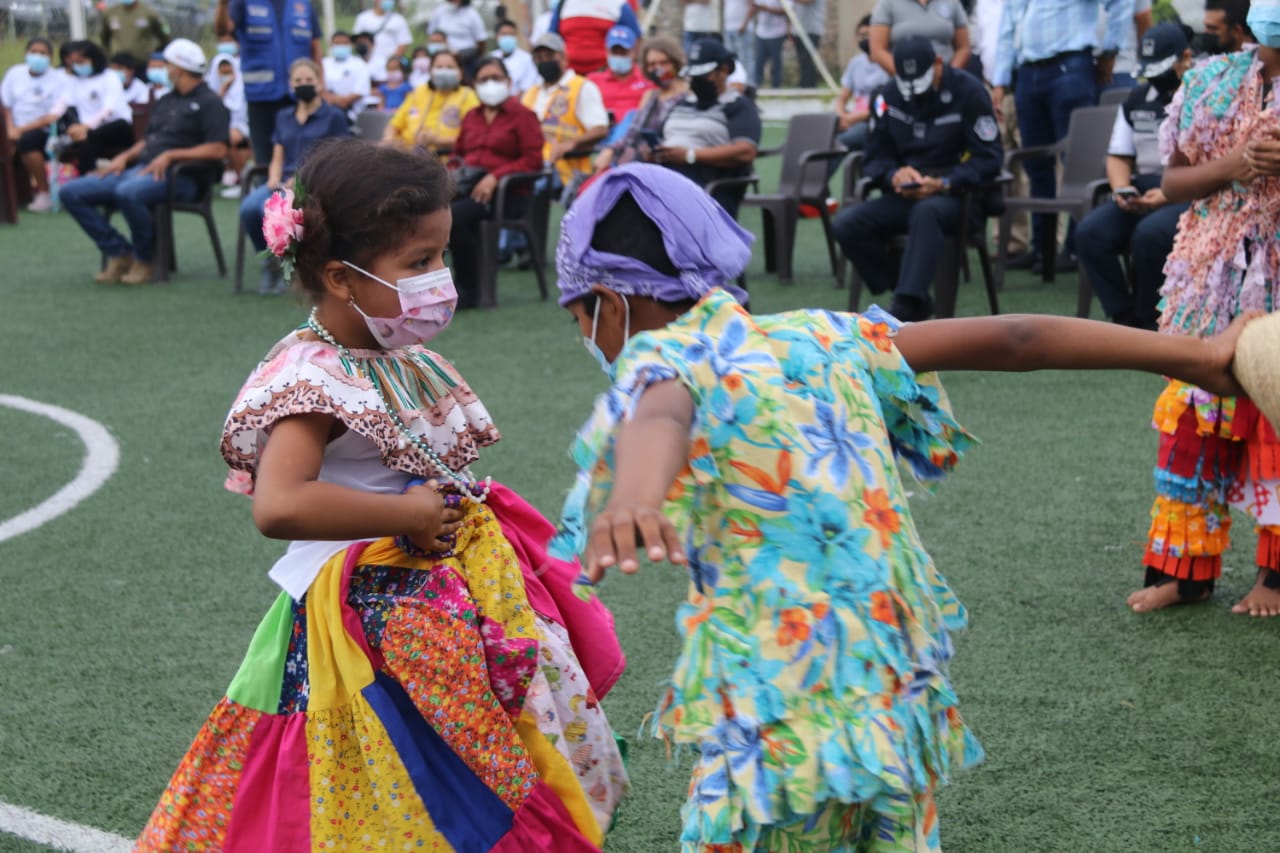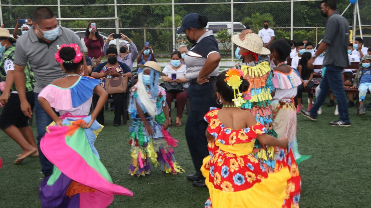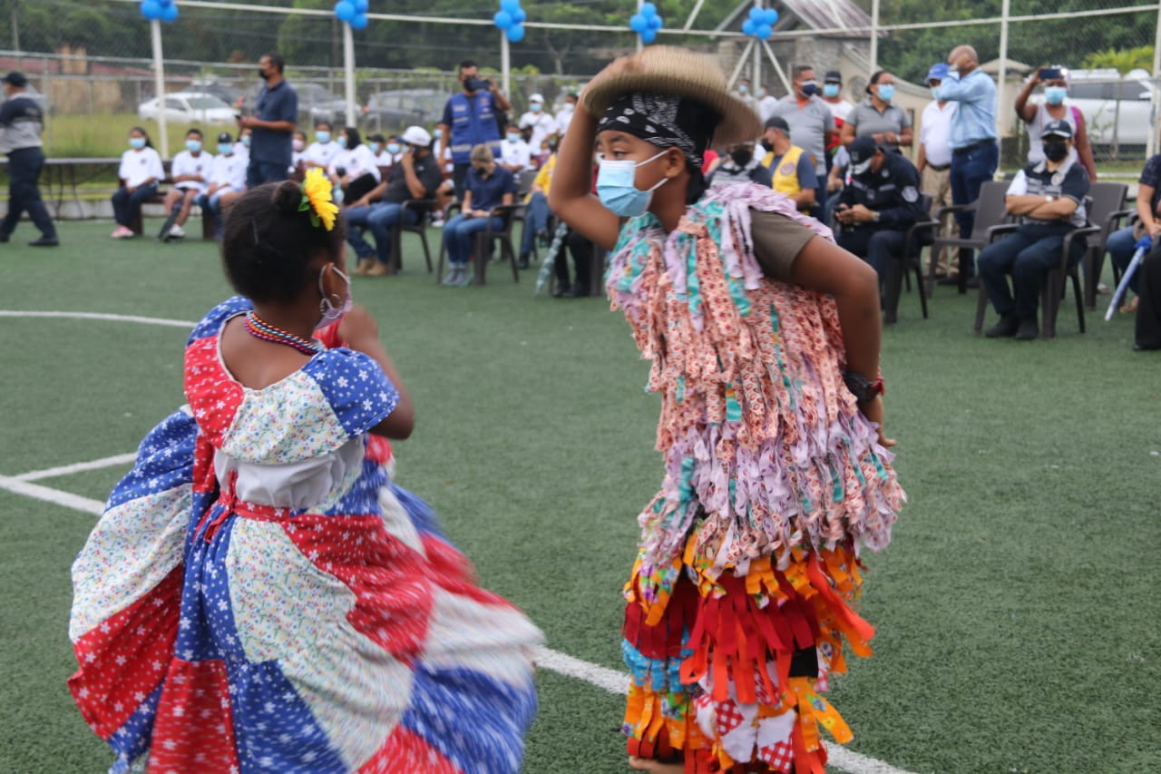 Con la presencia de las autoridades del distrito de Antón y miembros de la Policía Nacional el acto inició con la invocación religiosa, seguido de las presentaciones folclóricas preparadas por niños y niñas que deleitaron a los presentes con los bailes típicos de la región.