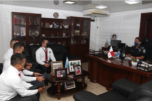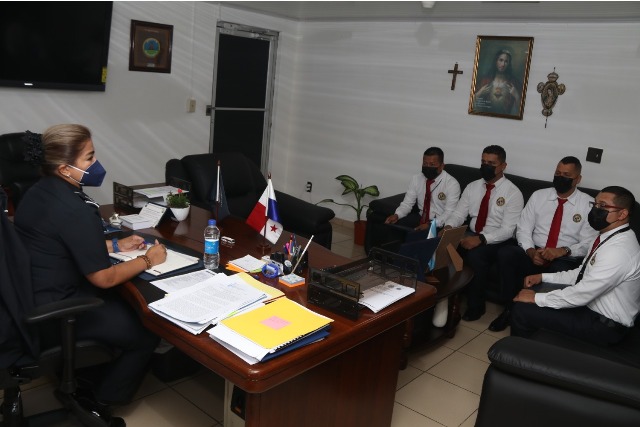 El subteniente Cristian Méndez, cabo 2. Juan Moreno, cabo 1. Alejandro Mata y el cabo 1. Fernando Flaco, fueron recibidos en el Despacho de la Secretaria General de la Policía Nacional, comisionada Ayda Villarreal.