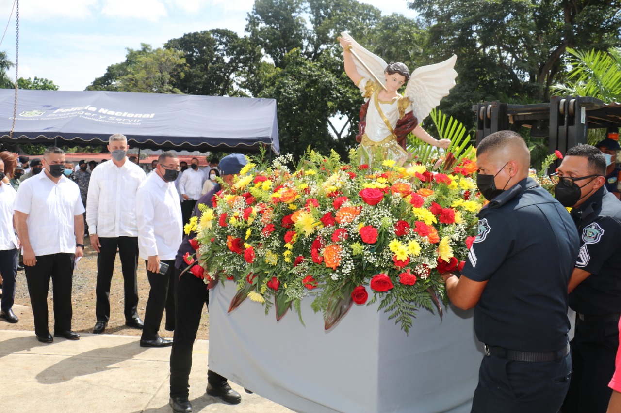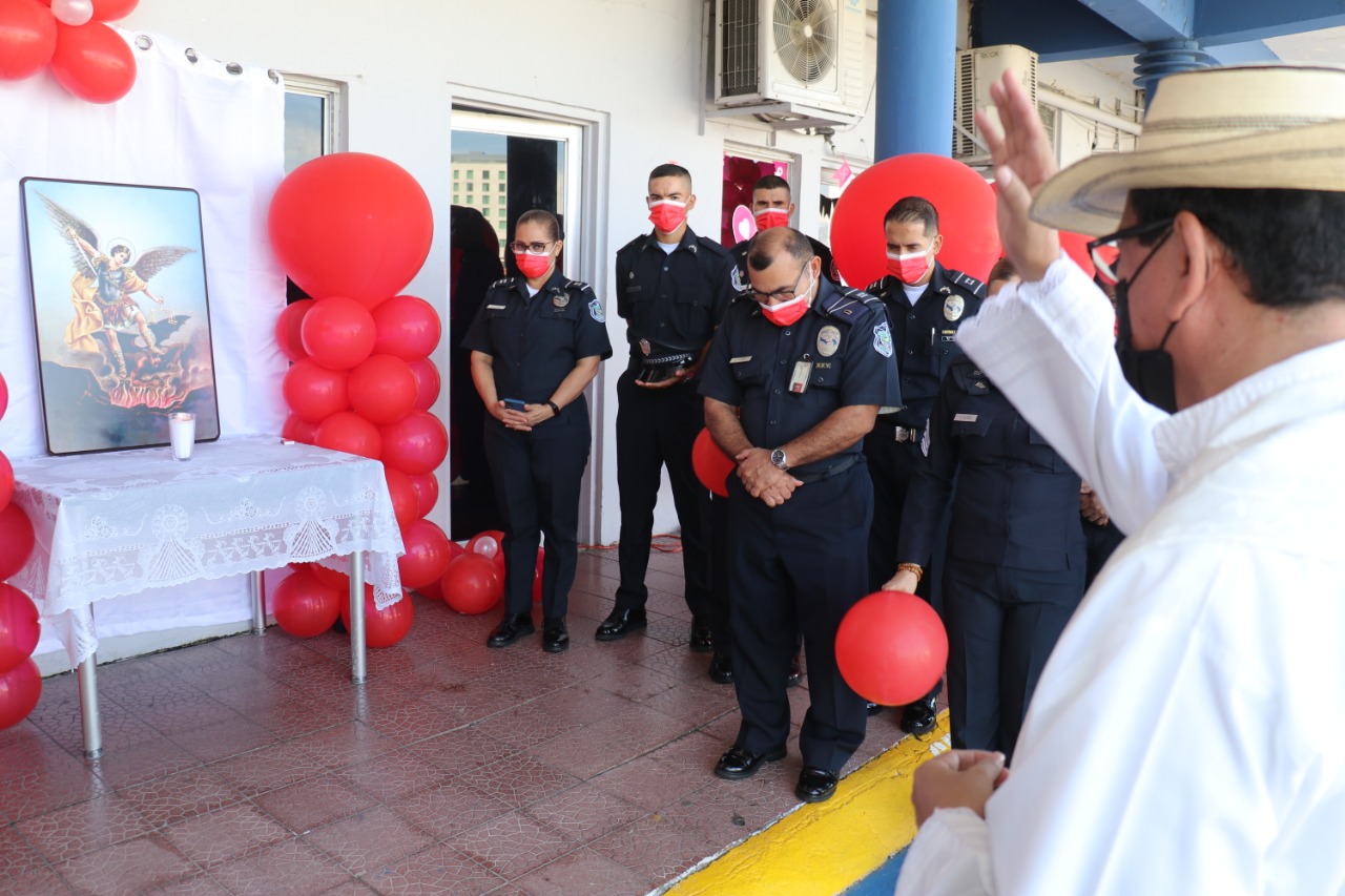 En honor a San Miguel Arcángel, patrono de la Fuerza Pública, la Policía Nacional realizó una eucaristía oficiada por el capellán Edgar Flores en la capilla que lleva su nombre en la sede de la sede principal en Ancón.