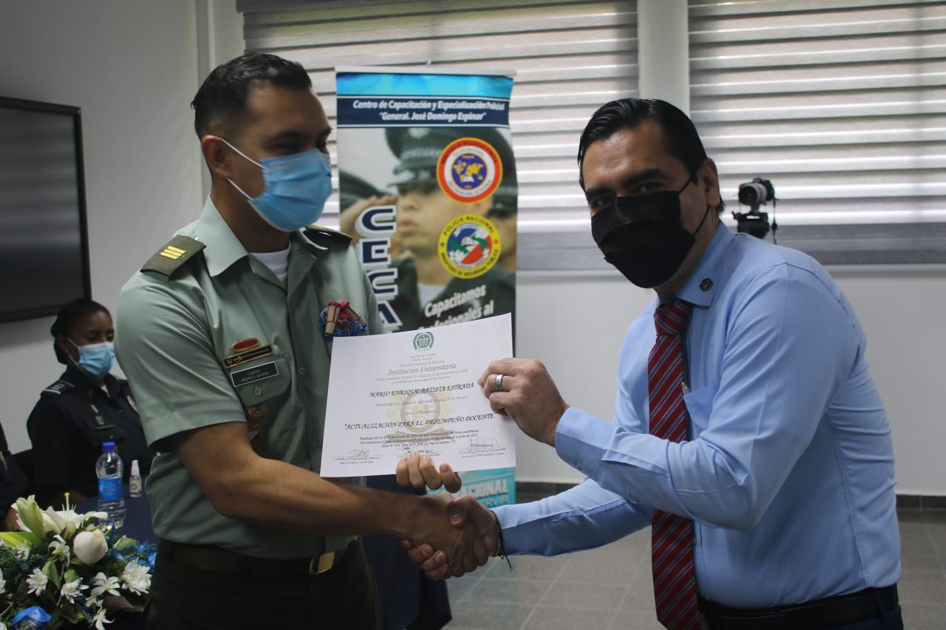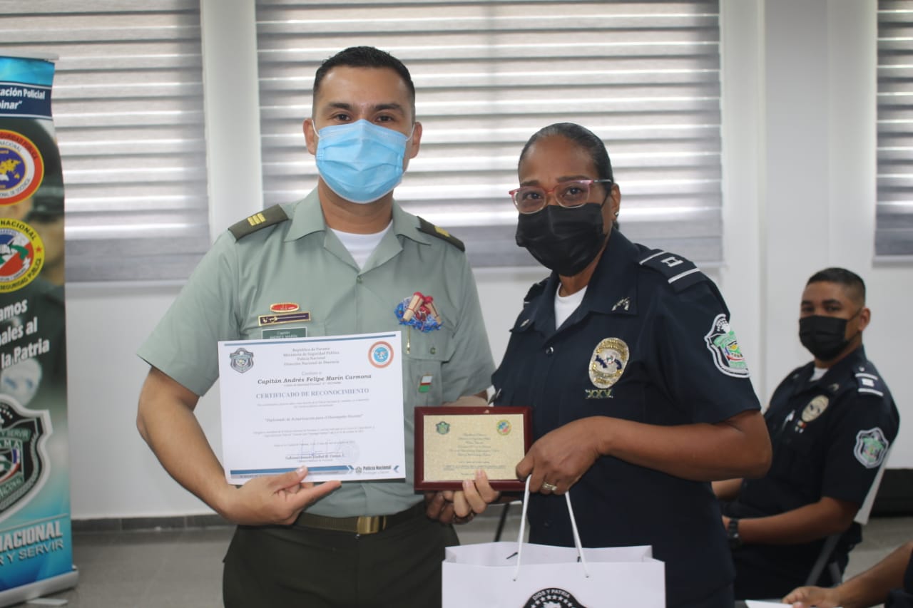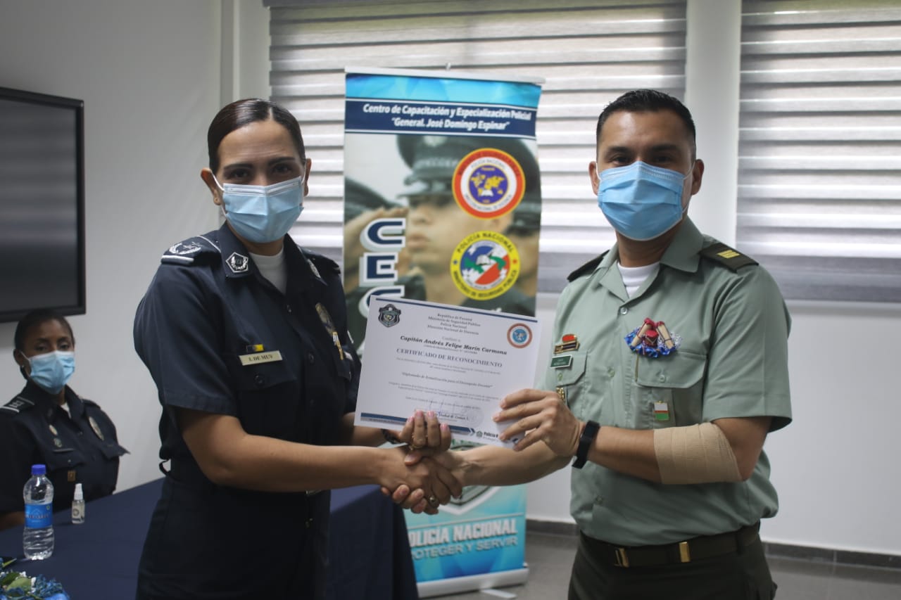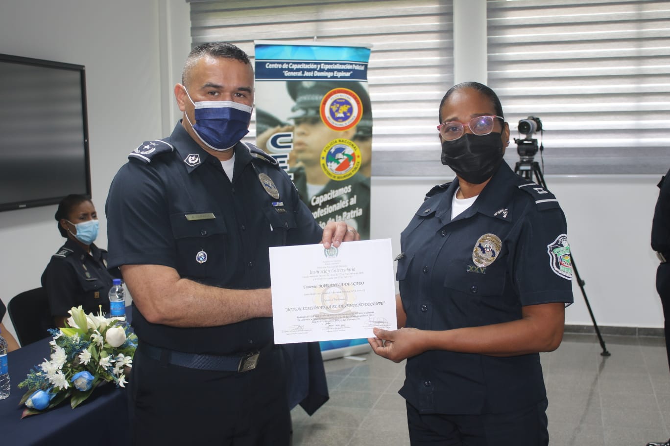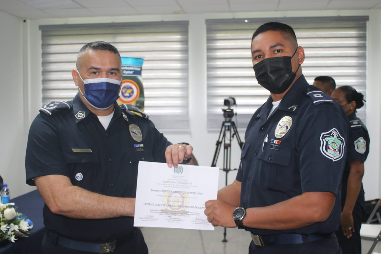 Unos 23 miembros juramentados y no juramentados de la Policía Nacional recibieron sus certificados de participación en el Diplomado para el Desempeño Docente organizado en el Centro de Capacitación y Especialización Policial (CECAESPOL) “General José Domingo Espinar”.