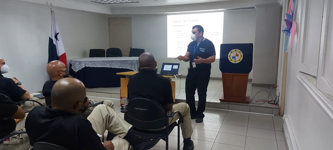 Con el objetivo de concienciar a la población masculina sobre la importancia de descubrir el cáncer de próstata en su etapa inicial, unidades de servicio en la Dirección de Investigación Judicial (DIJ) recibieron docencia del tema, por parte del médico urólogo Manuel Guerra de la Policlínica de San Francisco. Durante la charla se impartió información sobre los principales síntomas de esta enfermedad y los tipos de exámenes que se ofrecen para detectarlo a tiempo. Dicha charla se realizó en el salón de protocolo de la DIJ en la sede de Ancón bajo la coordinación de las oficinas de Trabajo Social y Psicología de esta dirección investigativa, en alusión a la lucha internacional contra el cáncer. |