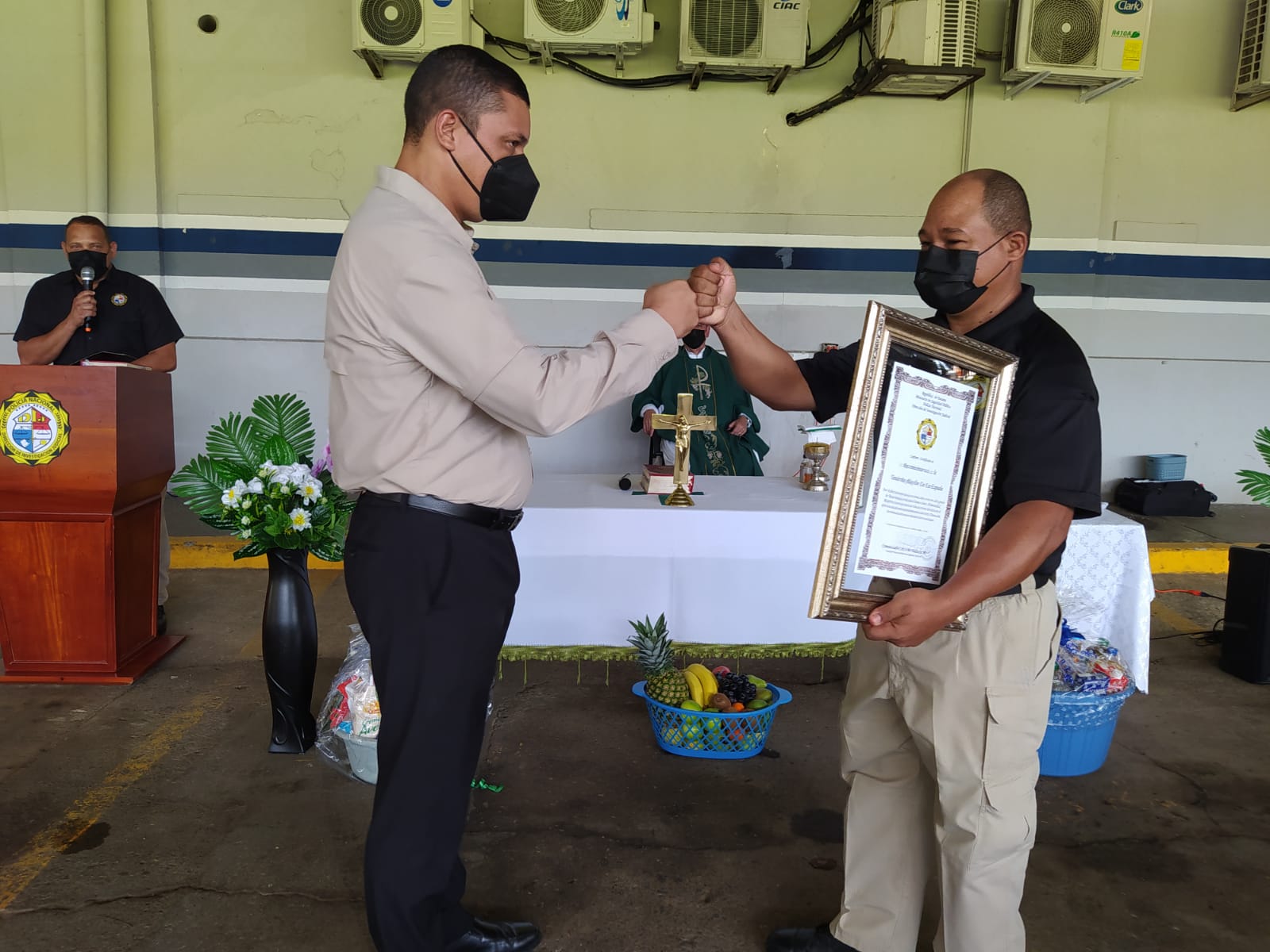 Seis unidades policiales de servicio en la Dirección de Investigación Judicial (DIJ) recibieron este viernes 29 de octubre, reconocimiento por sus 30 años de servicio continuos en la institución. El acto se realizó seguido de una Eucaristía en la sede de la DIJ en el corregimiento de Ancón, con la participación del Director Encargado Irving Castillo, quien hizo entrega a los oficiales de sus reconocimientos. Los tenientes Rubén Cubilla, Diobelis Castillo, Heriberto Hernández, Sonia Pérez, Leyden Espinosa y Rogelio De La Espada desempeñaron sus funciones con un alto grado de responsabilidad, profesionalismo, honestidad, respeto y vocación de servicio. |