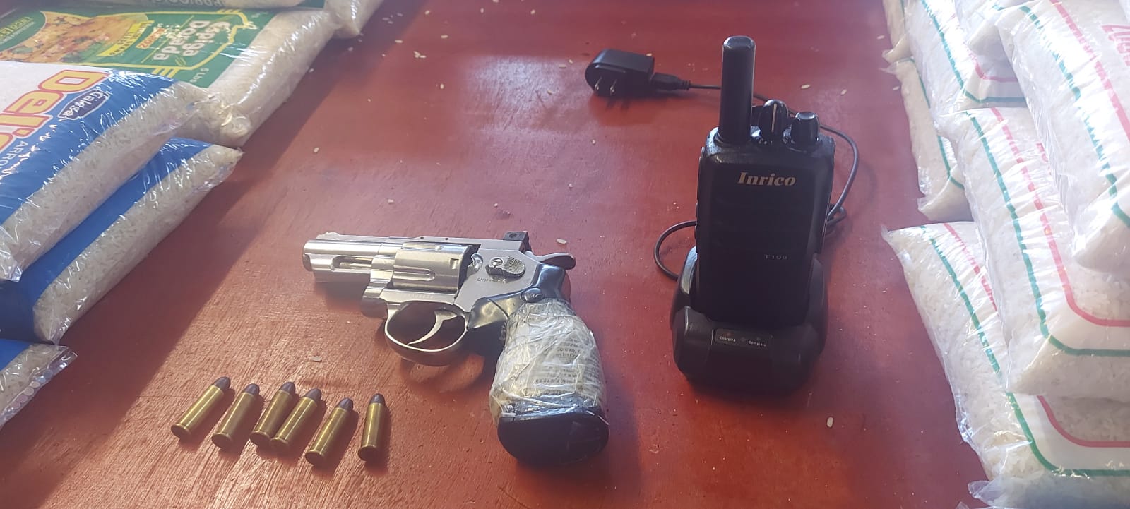 Tras una operación policial Contra la Posesión y Tráfico Ilícito de Armas de Fuego, la Policía Nacional junto al Ministerio Público aprehendieron a siete extranjeros y decomisaron seis armas, en los corregimientos de Tocumen y la 24 de Diciembre. Cuatro de las armas son de tipo pelex y otras dos contaban con sus respectivos proveedores y municiones, las cuales eran portadas por estas personas que ejercían la función de seguridad privada en diversos comercios de la localidad. Los aprehendidos fueron puestos a órdenes de la Fiscalía de Crimen Organizado para los trámites de rigor correspondientes. |
