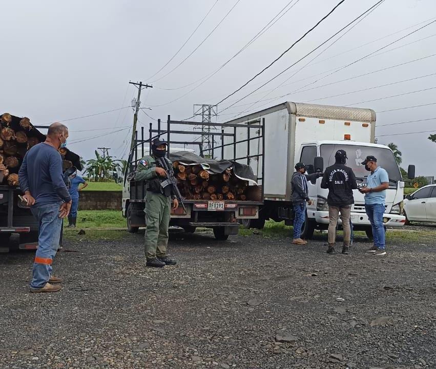 Unidades de la Vigésima Zona de Policía de Chilibre, y de la Policía Ambiental, lograron este sábado la incautación y confiscación de dos camiones tipo "pick up", cargados de la madera conocida como "Teca", y la detención de tres ciudadanos de nacionalidad panameña, que llevaban la carga ilegítima.