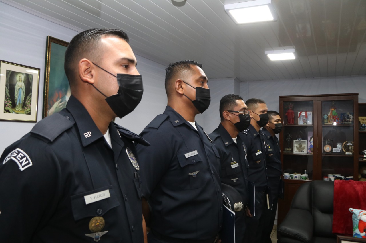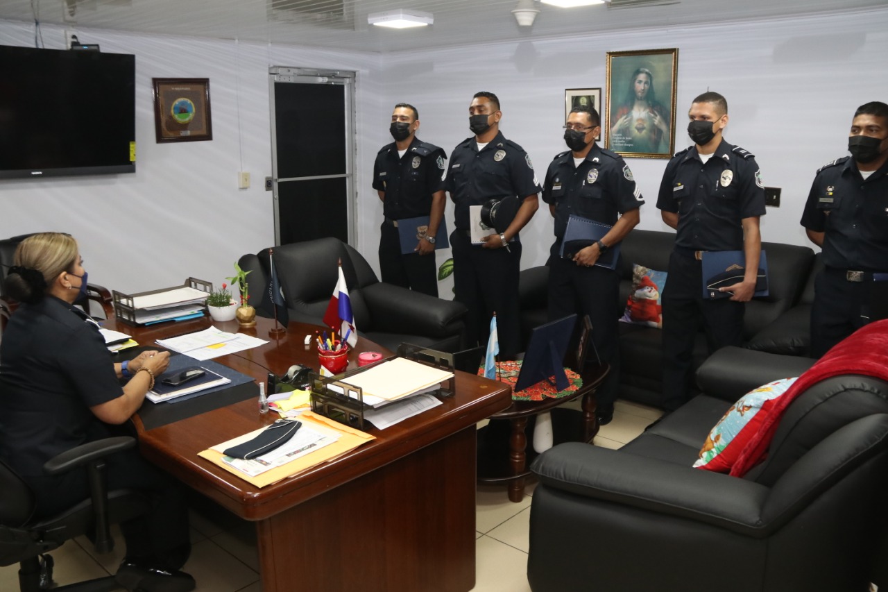 Un grupo de 5 uniformados de la Policía Nacional, culminó satisfactoriamente cursos de capacitación en diversos ámbitos profesionales en la Academia Interamericana de Las Fuerzas Aéreas en San Antonio, ubicada en la Base Aérea de Lackland, Estados Unidos. El Capitán Juan Palacios, recibió su certificado al participar en el curso Profesional de Liderazgo para Oficiales Subalternos. Por su parte, el Sargento Segundo Girón Castillo cumplió con sus 150 horas reglamentarias para adquirir su diploma del curso en Fundamentos de Inteligencia y Reconocimiento. Y el Cabo Primero Valerio Flores, obtuvo su diploma en Administración de Adiestramiento en el Trabajo (AET). Estos conocimientos adquiridos refuerzan los altos niveles de capacitación continua para el fortalecimiento institucional y brindar a la sociedad un servicio eficiente y eficaz. La Secretaria General de la Policía Nacional, Ayda Villarreal, recibió en su despacho a estas unidades, extendiéndoles sus felicitaciones por esta experiencia académica, la cual será de apoyo en la labor que realizan en la institución. |