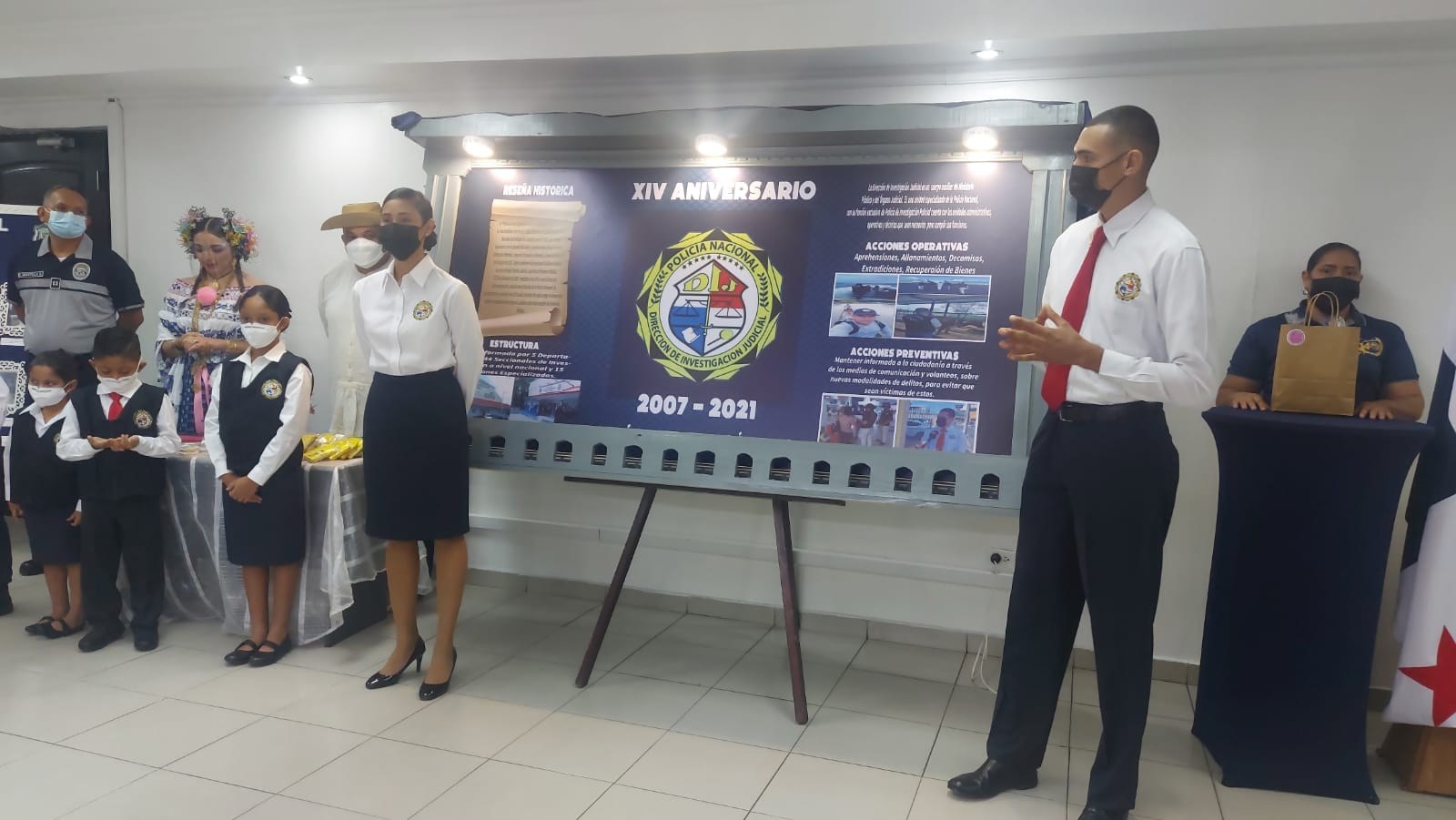 Con el lema ‘La Evolución de la DIJ’ se llevó a cabo el primer concurso de murales alusivo al 14° Aniversario de esta importante Dirección de la Policía Nacional, cuyo cuerpo investigativo ha tenido diversos cambios, adecuándose a las necesidades de investigación y actividades delictivas que se presentan diariamente. Los participantes fueron sus cinco departamentos entre estos: Crimen Organizado, Investigaciones Criminales, Operaciones, Recursos y Servicio de Apoyo, donde cada uno contó con 15 minutos de exposición, la cual se realizó en su sede ubicada en el corregimiento de Ancón. El jurado conformado por el Subcomisionado Fernando Sanjur de la Dirección Nacional de Operaciones del Tránsito, el reconocido periodista Manuel Batista y la Subdirectora de Comunicación y Proyectos de la Policía Nacional, Liliana Bernal, tuvieron la responsabilidad de elegir los tres primeros puestos, apegándose a los lineamientos establecidos desde la promulgación del concurso. Fue así que, el primer lugar lo obtuvo el Departamento de Recursos, el segundo lugar, el Departamento de Crimen Organizado y el tercer lugar le correspondió al Departamento de Investigaciones Criminales. Durante la escogencia, el selecto jurado resaltó el trabajo en equipo y sobre todo el aprendizaje continuo que llevan a cabo cada una de las unidades que conforman la Dirección de Investigación Judicial, y que desde su creación a la fecha, ha fortalecido su labor investigativa para actuar con total profesionalismo y dedicación a favor de las víctimas del delito. |