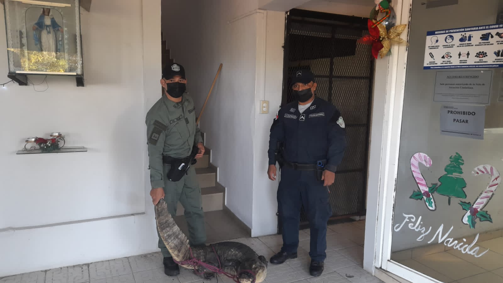 POLICÍA NACIONAL RESCATA A COCODRILO EN ALCALDE DÍAZ