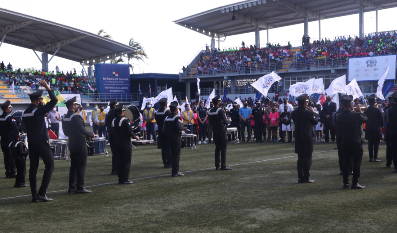 El estadio Maracaná, ubicado en la Cinta Costera 3, fue el escenario de la inauguración del Mundial de Las Estrellas, en el que participan más de 15 mil niños y adolescentes. Este evento deportivo, que es muy esperado cada época de verano, incentiva la práctica deportiva, recreativa y cultural, en un trabajo interinstitucional con el apoyo del Despacho de la Primera Dama. Mundial de Las Estrellas, se convierte en la oportunidad de muchos chicos de diversos barrios de mostrar su talento, abriéndoles puertas en las importantes ligas de fútbol a nivel nacional en diferentes categorías, y así, poder cumplir el sueño anhelado de una carrera deportiva exitosa y de orgullo para el país. El Subdirector General de la Policía Nacional, Simón Henríquez, acompañado por la jefa del Servicio de Integración y Participación Ciudadana, Subcomisionada Thelma Palma, estuvieron presentes para reafirmar el respaldo de la Institución a este magno evento, que de manera simultánea se realizará en 80 sedes deportivas a nivel nacional. La Policía Nacional apoya la actividad, como parte de los programas preventivos dirigidos a la niñez y juventud, ofreciéndoles charlas de prevención y actividades para su desarrollo integral, promover la sana convivencia fortalecer los valores. |