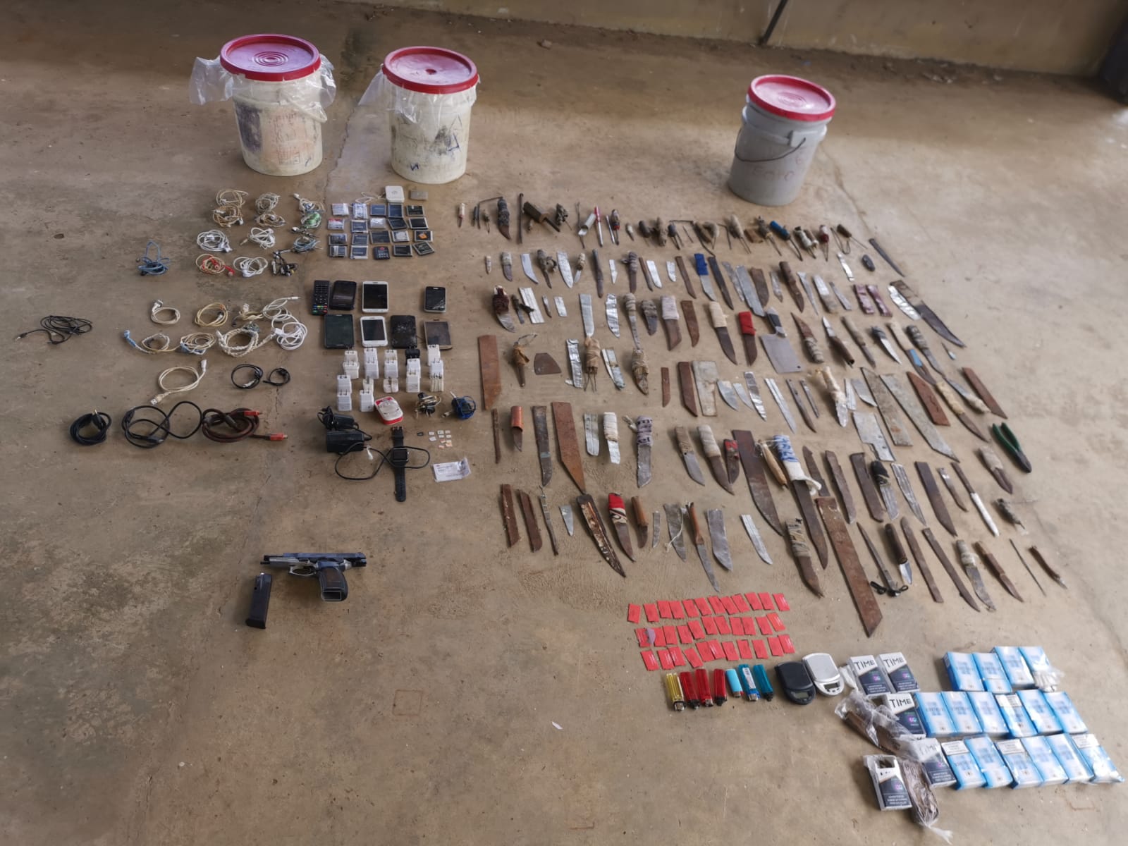 Un arma de fuego calibre 9 milímetro, marca Bersa SA, serie 642015, un cargador sin municiones, además de 152 platinas, 6 bolsitas con presunta droga, 2 bolitas de supuesto feeling, fueron incautados durante la Operación Armagedón, registrada en el Centro Penitenciario La Joya. En las diligencias policiales allanaron el Pabellón No. 2 donde también se decomisaron 7 celulares, 20 paquetes de cigarrillo, 11 chips, 34 guilletes, 1 reuter, 5 cargadores de celulares 17 cabezotes de cargador, 13 audífonos, 11 cables USB, 7 encendedores, 1 reloj digital, artículos prohibidos que también puestos a órdenes de las autoridades competentes. La Policía Nacional repontencia las operaciones a nivel nacional, con la misión de desarticular grupos delincuenciales y mantener la sana convivencia y el orden en los centros penales. |