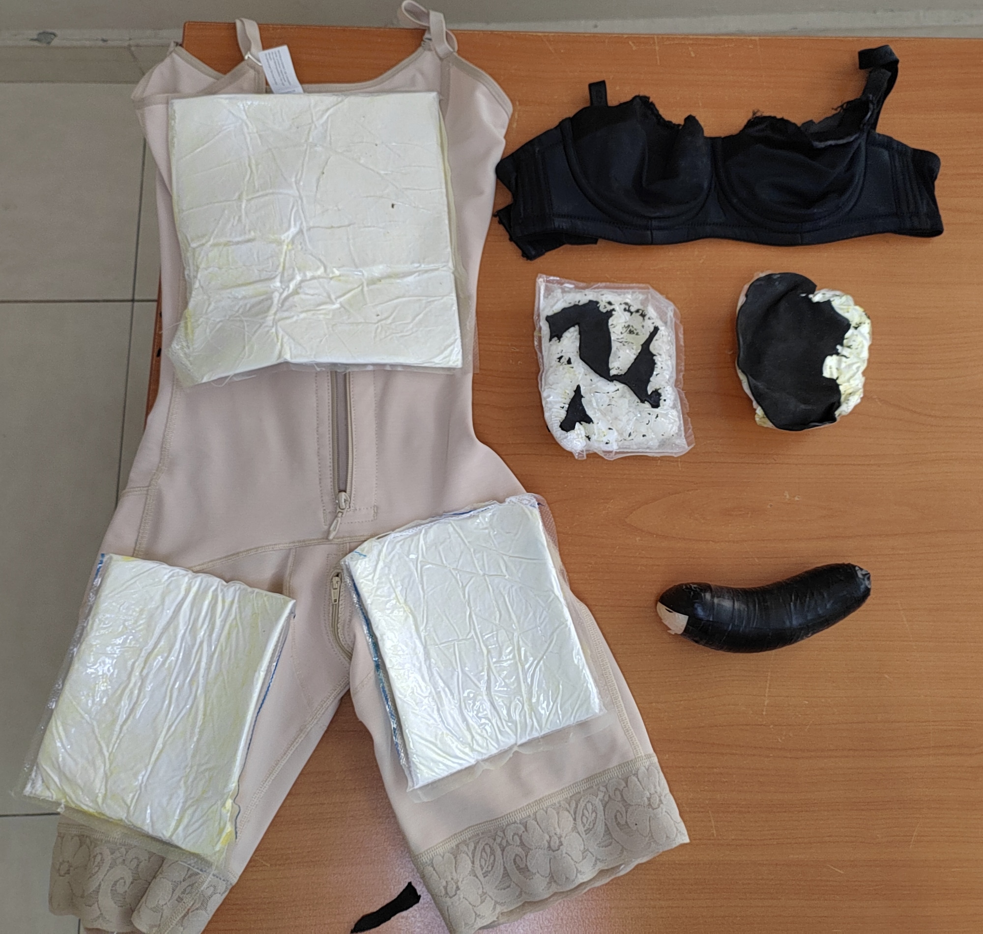 Unas 05 planchas con sustancias ilícitas, además de un cilindro con supuesta droga, fueron confiscados a una dama de nacionalidad Jamaicana, durante los operativos de rastreo efectuados en las instalaciones del Aeropuerto Internacional de Tocumen. La pasajera Jamaicana llegó a la Ciudad de Panamá el pasado 23 de Febrero del 2022, procedente de Nassao Bahamas y saldría con destino al mismo destino de Bahamas. La Policía Nacional en coordinación con los demás Estamentos de Seguridad mantienen las 24 horas del día y los 7 días de la Semana, con la misión de bloquear los delitos relacionados al Tráfico Internacional de Drogas y el Crimen Organizado. |