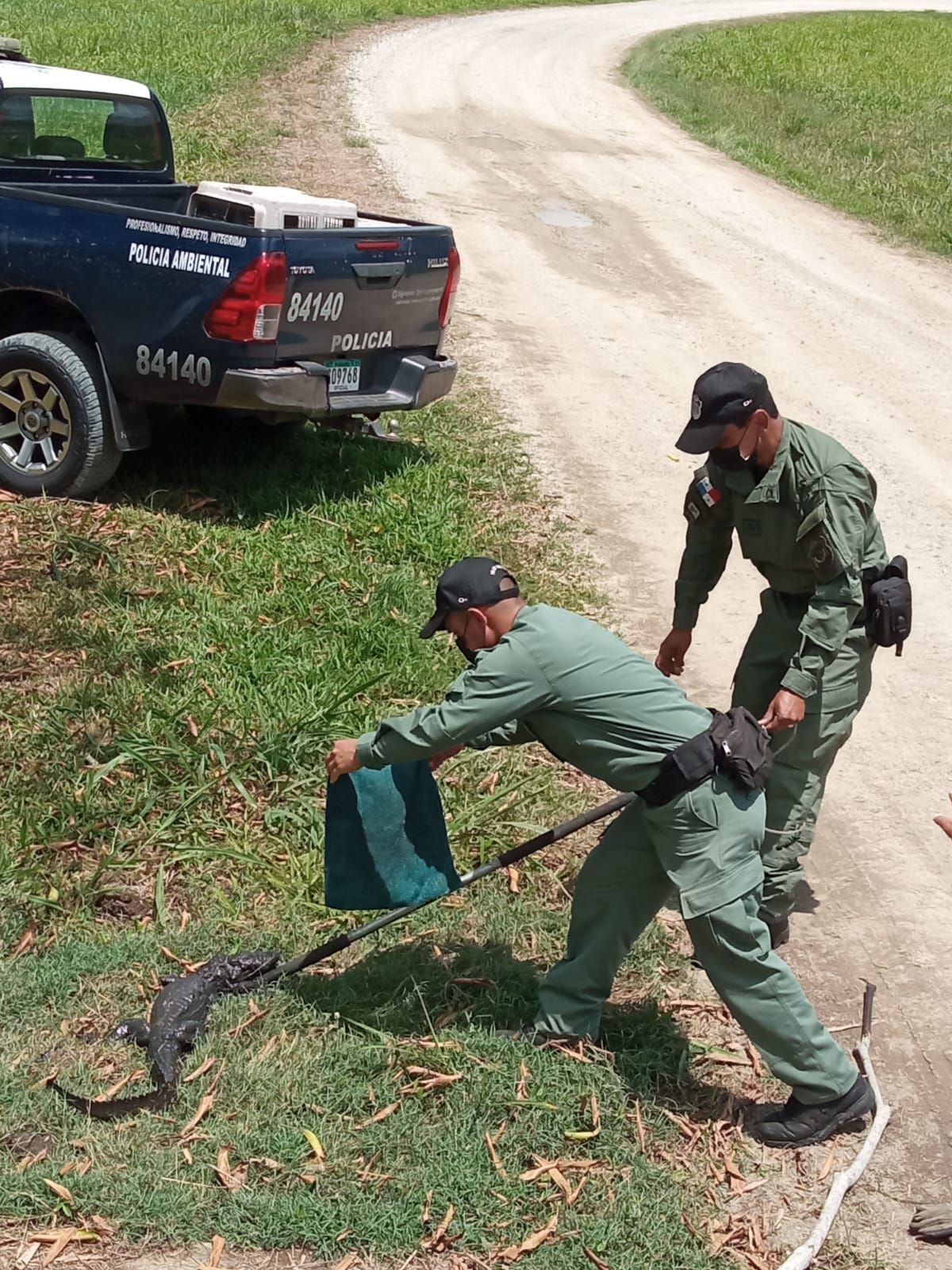 Carente de su entorno natural y atrapado en aguas contaminadas y sedimentos sólidos fue rescatado un pequeño Cocodrilo Poroso (crocodylus porosus) dentro de una cuneta, localizada en el sector de Corozal, gracias a una llamada solidaria, por parte de la ciudadanía a la Sala de Atención Ciudadana, de la Policía Ambiental Rural y Turística. Un aproximado de 30 animales de esta fauna silvestre han sido rescatados en lo que va del año 2022, y posteriormente liberados en algunos afluentes hídricos del país. El Teniente Julio González, de la Dirección Nacional Ambiental Rural, y Turística dijo que los patrullajes de rescate de animales domésticos y silvestres se desarrollan con mayor frecuencia en Panamá Centro, Juan Díaz, Pedregal, Mañanitas; así como también en Panamá Norte, Alcalde Díaz, Chilibre y en Panamá Este que incluyen las comunidades de Tocumen, Pacora y 24 Diciembre. |