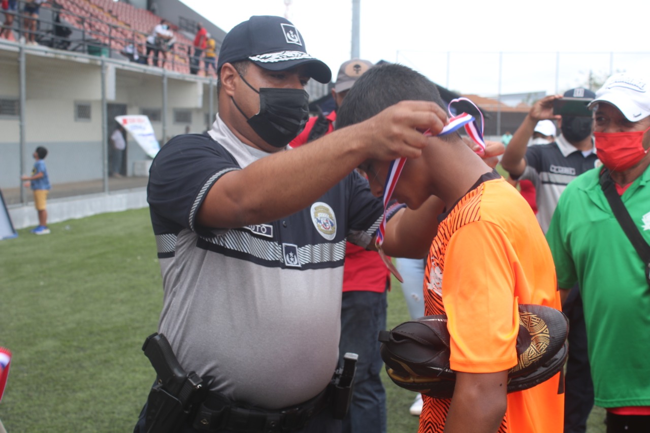 Un torneo que inició con 117 equipos, pero solo 6 obtuvieron su pase a la gran final “Copa Las Estrellas de Panamá Oeste” actividad deportiva llevada a cabo por el Ministerio de Seguridad Pública en el estadio Muquita Sánchez en el distrito de La Chorrera. Mientras que en los encuentros de la categoría sub-11 los representantes de Barrio Colón, La Chorrera vencen por penales 2 (3) vs 2 (1) al equipo de Chame, Sajalice y Arraiján, Juan Demóstenes Arosemena le gana 2 -1 a Herrera, La Chorrera. En tanto en la categoría sub-13 Barrio Balboa, La Chorrera superó sin problemas 6- 1 a los representantes de San Carlos, Guayabito y el equipo de Chame, Sajalices se lleva el triunfo 1 – 0 ante El Coco, La Chorrera. Un total de 1,900 niños y jóvenes en edades de nueve a 13 años, participaron de este torneo deportivo que culmina el próximo sábado 26 de marzo en el estadio Muquita Sánchez en Panamá Oeste. Estas actividades tienen como propósito de promover el deporte y mantenerles a los niños, niñas y jóvenes alejados de la violencia y preservar la convivencia pacífica. |