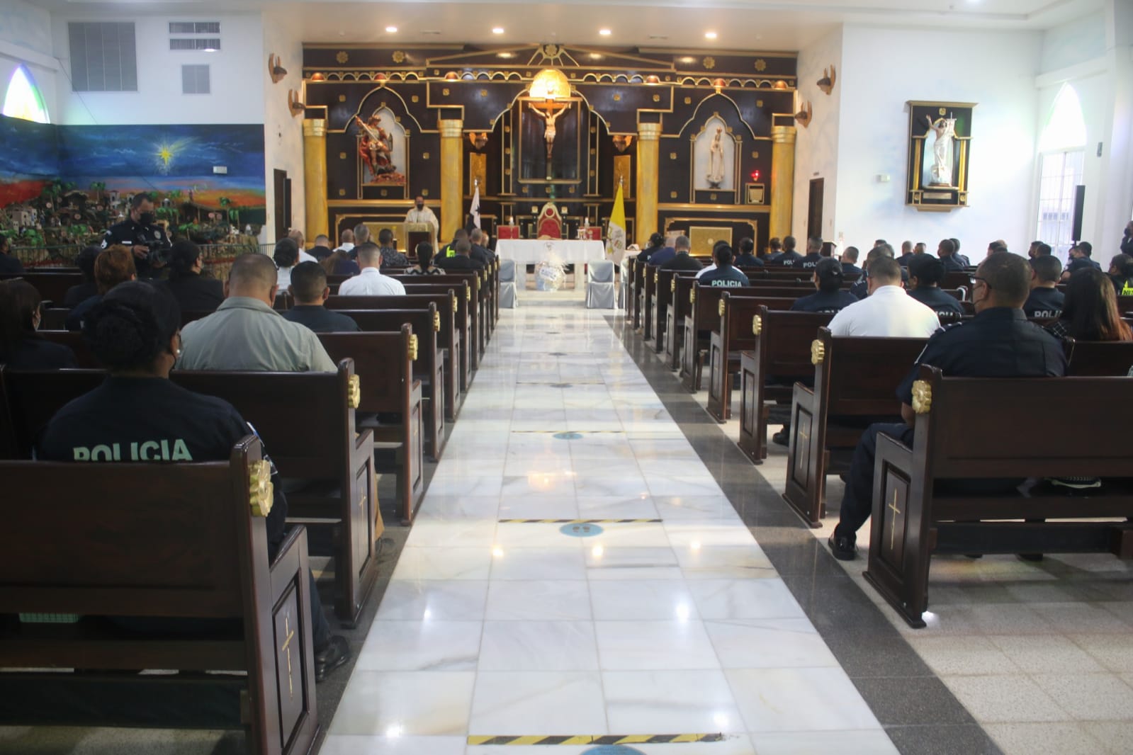 Con la participación del Subdirector General de la Policía Nacional Simón Henríquez y miembros del Directorio, se inició en la mañana de hoy la conmemoración de la Semana Santa y con ello el simbolismo del lavado de los Pies como muestra de humildad y vocación de servicio. La actividad se realizó en la capilla San Miguel Arcángel de la sede de la Policía Nacional donde se dieron citas los jefes de direcciones, y miembros no juramentados quienes se unieron a conmemorar la Semana Santa. El Capellán Edgar Flores quien lidera la fe católica en la sede policial se inclinó ante los 12 uniformados a quienes les lavó los pies tal como lo hizo Jesús con sus discípulos. Para la Iglesia Católica el lavatorio de los pies es uno de los rituales más importante dentro del marco de la Pascua ya que es muestra de humildad y simboliza la inmensa vocación de servicio que todos los fieles deben practicar de acuerdo al código moral de los bautizados católicos. |