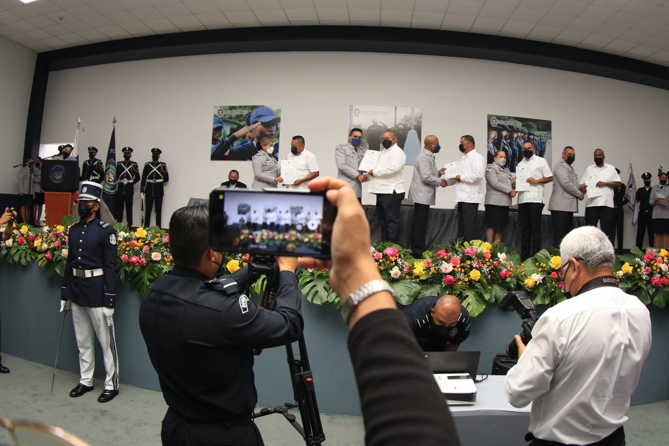 La vida consagrada al servicio de la Patria que dedicaron oficiales en retiro, al culminar sus 30 años de labores en la Policía Nacional, fue enaltecida con una ceremonia de reconocimiento, realizada en el auditorio del Instituto Superior Policial (ISPOL). Se trata de las promociones de capitanes, de 1988, 1989 y 1991, quienes fueron pioneros en la transformación institucional en un proceso de transición histórica, que llevo a la creación de la nueva Policía Nacional. El Director General, John Dornheim, junto al Subdirector General, Simón Henríquez y miembros del Directorio Policial le hicieron entrega a los oficiales, de los merecidos certificados de reconocimiento. “Para mí es un honor agradecerles por ser ejemplo del buen policía. Hoy culminan una etapa con honra y por la puerta ancha, siempre serán bienvenidos en la institución. Misión cumplida”. Por su parte, la capitán Dora Zurita, en representación de sus compañeros de promoción agradeció por este reconocimiento, destacando que jamás dejarán de ser policías, porque fue la profesión que amaron, con los momentos difíciles y aquellos memorables. La ceremonia, que representó un acto simbólico a la trayectoria profesional de estos hombres y mujeres, que demostraron su vocación, compromiso y lealtad, contó con la presencia de sus familiares, a quienes el Director General Dornheim agradeció por su respaldo. Se dedicó un minuto de silencio, por aquellos oficiales que ya partieron a su encuentro con Dios. Jefes de zona y servicios policiales, también estuvieron presentes, en este homenaje, a quienes en su momento fueron sus tácticos y compañeros.