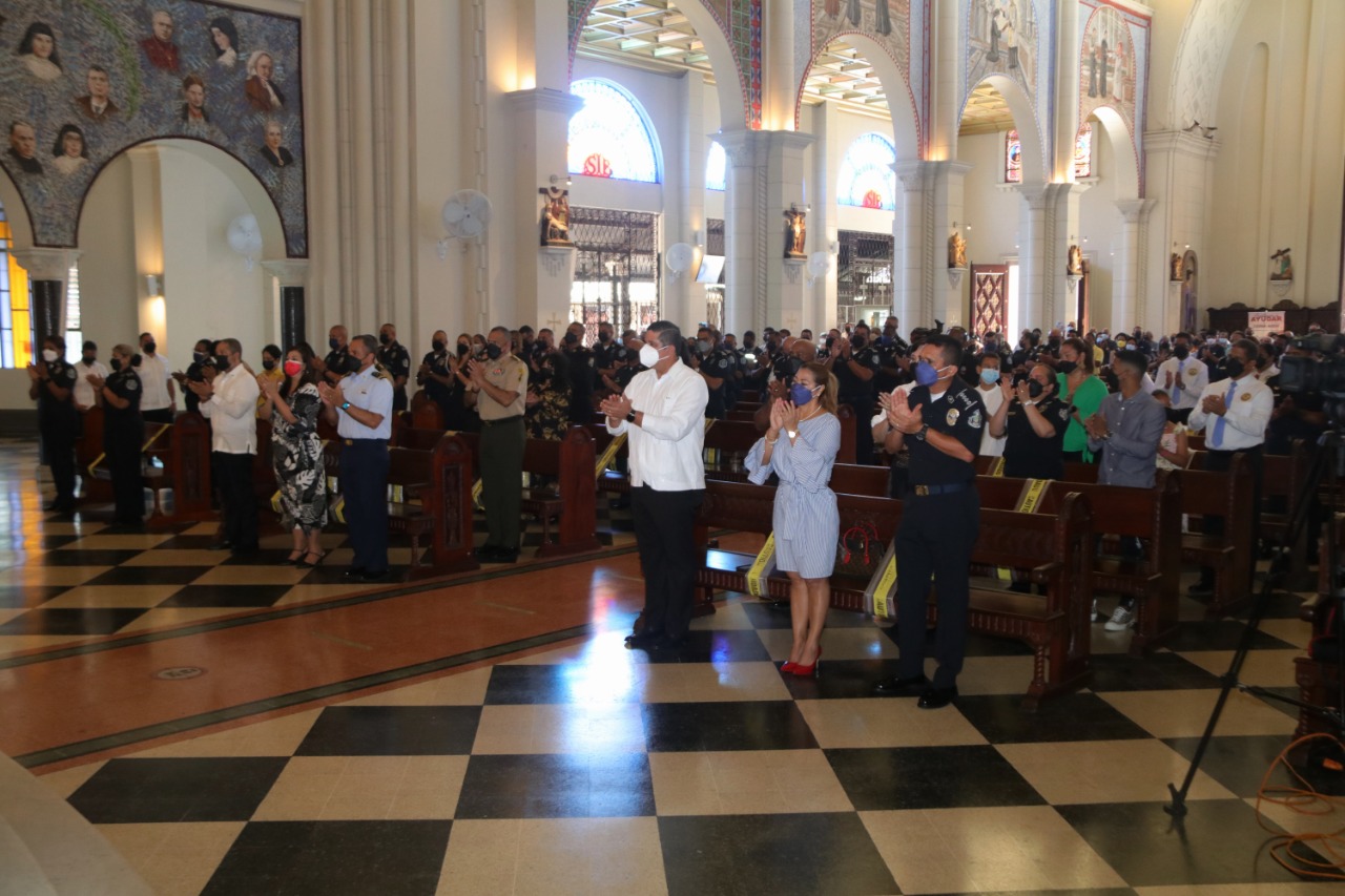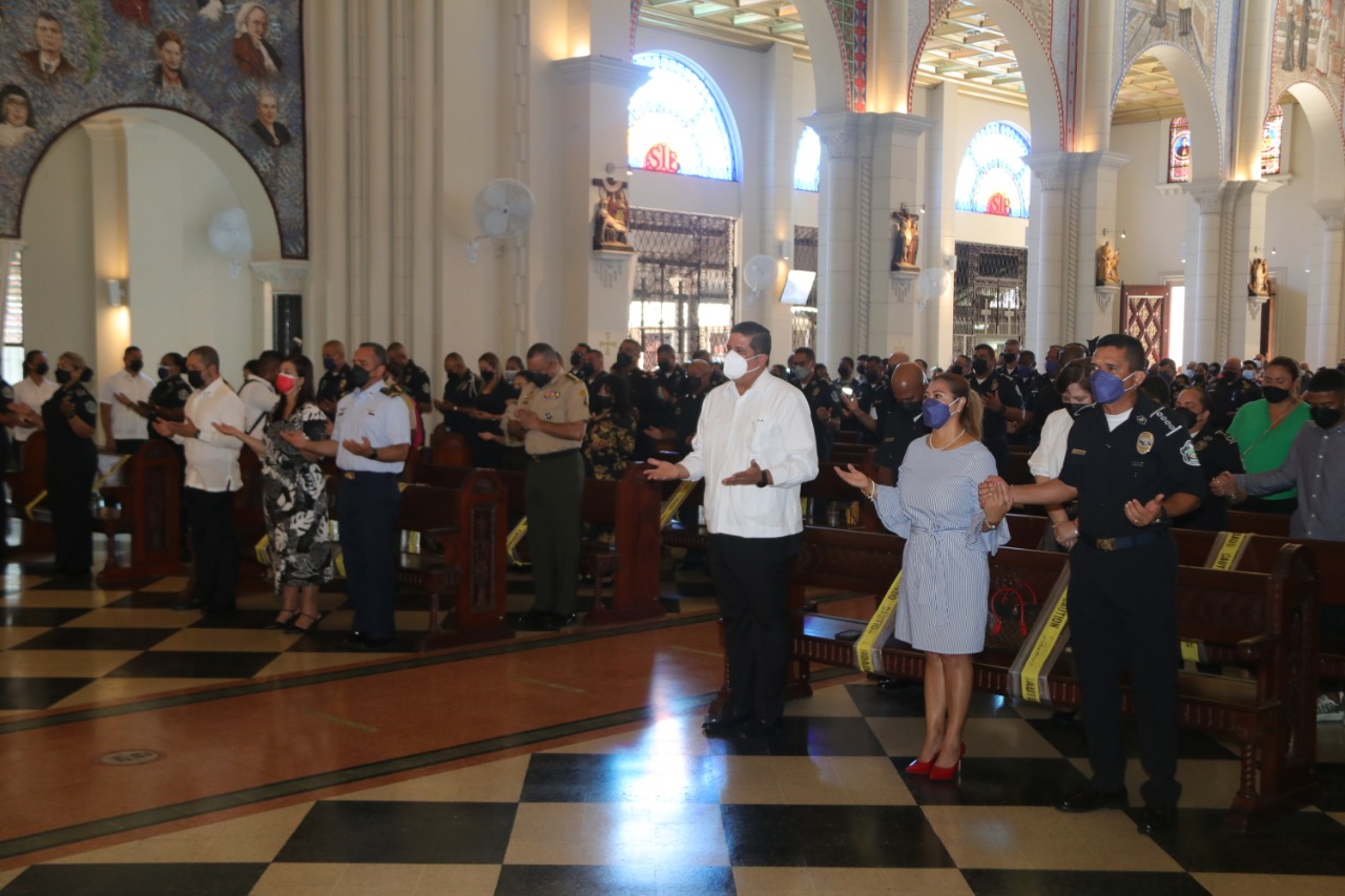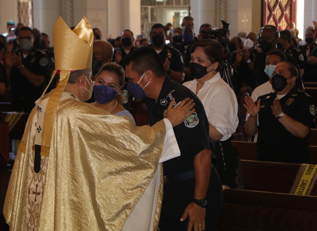 La misa fue presidida por Monseñor José Domingo Ulloa, Obispo Metropolitano de Panamá, quien acentuó la importancia de la sacrificada labor que realizan día a día los hombres y mujeres que conforman la Policía Nacional y a quien llamó héroes anónimos porque lo dan todo al servicio de la Patria.
