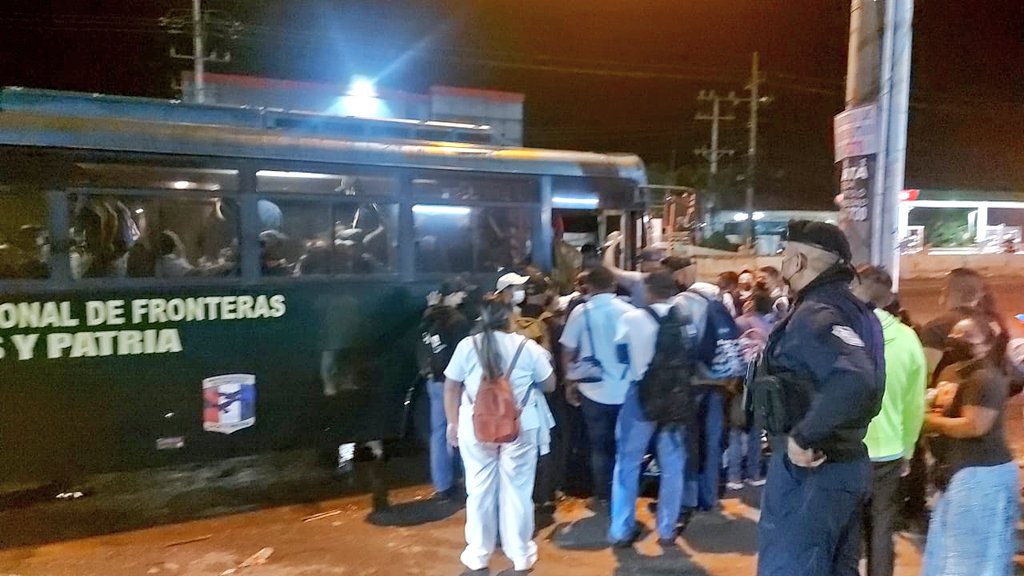 Usuarios del transporte público, lograron llegar a sus trabajos y otros destinos, al ser trasladados en los buses de los estamentos de seguridad, Policía Nacional, la ATTT y la empresa Mi Bus, que se unieron en un trabajo coordinado, como parte de la iniciativa del Gobierno Nacional para brindarles el apoyo ante el paro de labores de transportistas en Panamá Oeste. Asimismo, la Policía Nacional, implementa el operativo Paradas Seguras para garantizar la tranquilidad de los ciudadanos y evitar incidentes. Esta iniciativa contribuyó a desahogar las paradas de buses, evitando aglomeraciones y facilitar el traslado de manera segura. |
