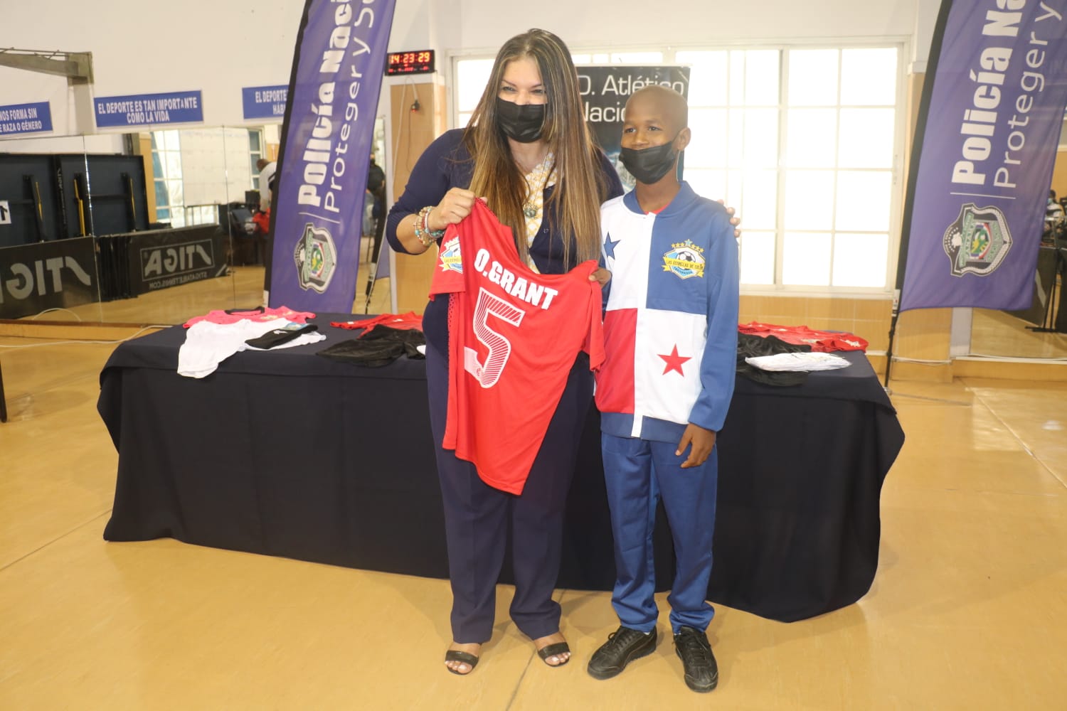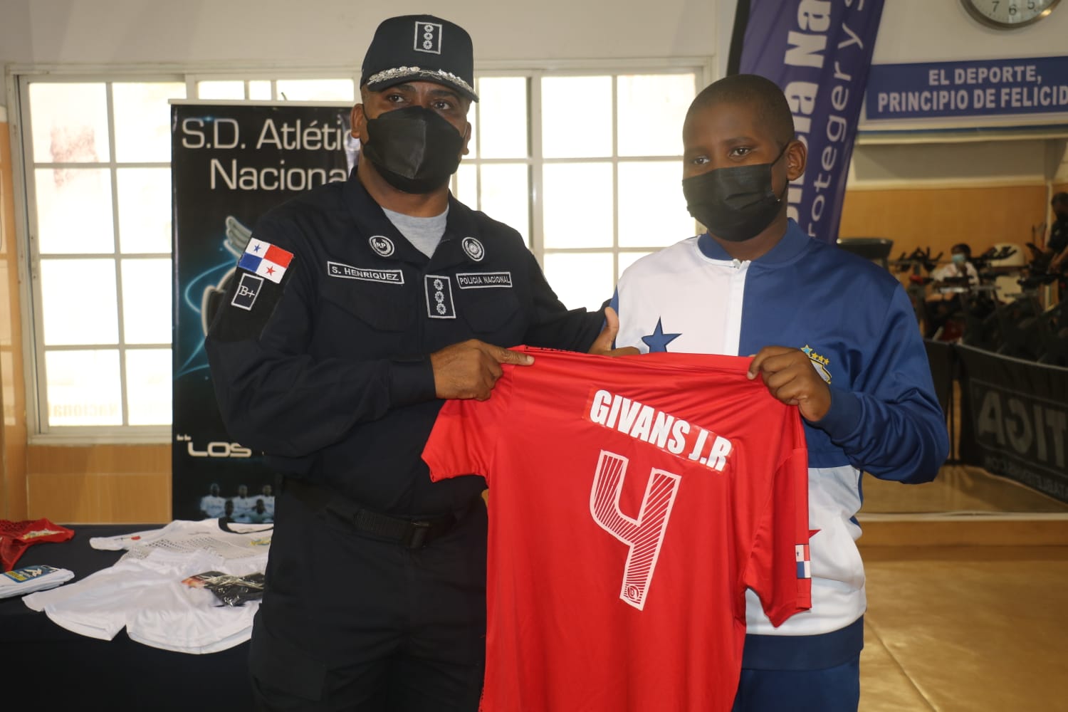 El equipo campeón de la Copa Las Estrellas de Colón, fueron recibidos por el Subdirector General de la Policía Nacional, Simón Henríquez en la ceremonia de entrega de uniformes a los 11 niños integrantes de este equipo de fútbol, quienes agradecieron a la Policía Nacional por su gran apoyo en estas competencias deportivas. Los fútbolistas del Barrio Norte del distrito de Colón, son los campeones de la categoría U 11 y representativos del Torneo Copa Estrellas de Colón, el cual se organizó con los seis distritos de la provincia, donde participaron unos 1,492 niños y niñas. Los deportistas participarán en el convivio internacional que se realizará en conjunto con el grupo del Club San Carlos de la primera división del fútbol Costa Rica, ubicado en San Carlos, provincia de Alajuela, Costa Rica. |