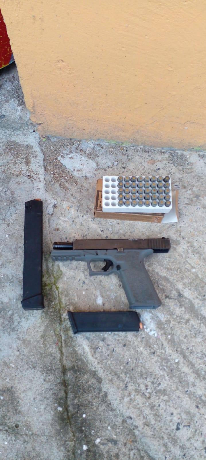 En el corregimiento de Las Garzas, sector La Mireya, a uno de los aprehendidos se le logró decomisar un arma de fuego marca Glock, calibre 9 m.m, dos proveedores, y más de 70 municiones en una caja, sin permiso.