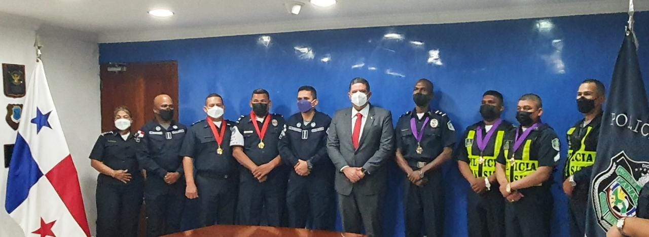 Por esa ardua labor, entrega, perseverancia, honestidad y principios institucionales, su excelencia, Juan Manuel Pino Forero, Ministro de Seguridad Pública y el Señor John Dornheim, Director General de la Policía Nacional acompañado, por el Subdirector General comisionado Simón Henríquez y oficiales miembros del miembros del Directorio Policial hicieron entrega de las medallas de reconocimiento a las unidades policiales distinguidas por su altruismo y alto grado de profesionalismo. Se confiere la Medalla de Servicio Distinguido al Capitán Carlos Jiménez y al Teniente Mario Casas, de servicio en la la Zona Policial de Chiriquí. Por la localización y el rescate de una Bebé recién nacida, fue abandonada en un potrero en el sector de Los Planes de Chorcha en la provincia de Chiriquí. La condecoración por Medalla al Valor entregada al Subteniente José Sánchez y Cabo 1ro. Ronald Avilés, quienes laboran en la Dirección Nacional de Operaciones del Tránsito, y oportunamente rescataron a una dama quien intentó lanzarse de un puente vehicular ubicado en La Chorrera próximo al Hospital Nicolás A. Solano. La Medalla al Valor al Subteniente Juan Murillo de la Zona Policial de San Miguelito por múltiples operaciones policiales que han permitido decomisar armas, drogas y salvar vidas a personas durante frustración de hecho delictivos. |