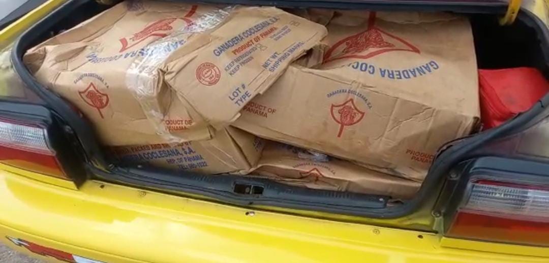SE TRANSPORTABAN EN TAXI CON GRAN CANTIDAD DE CAJAS DE CARNE, CUANDO FUERON APREHENDIDOS POR LA POLICÍA