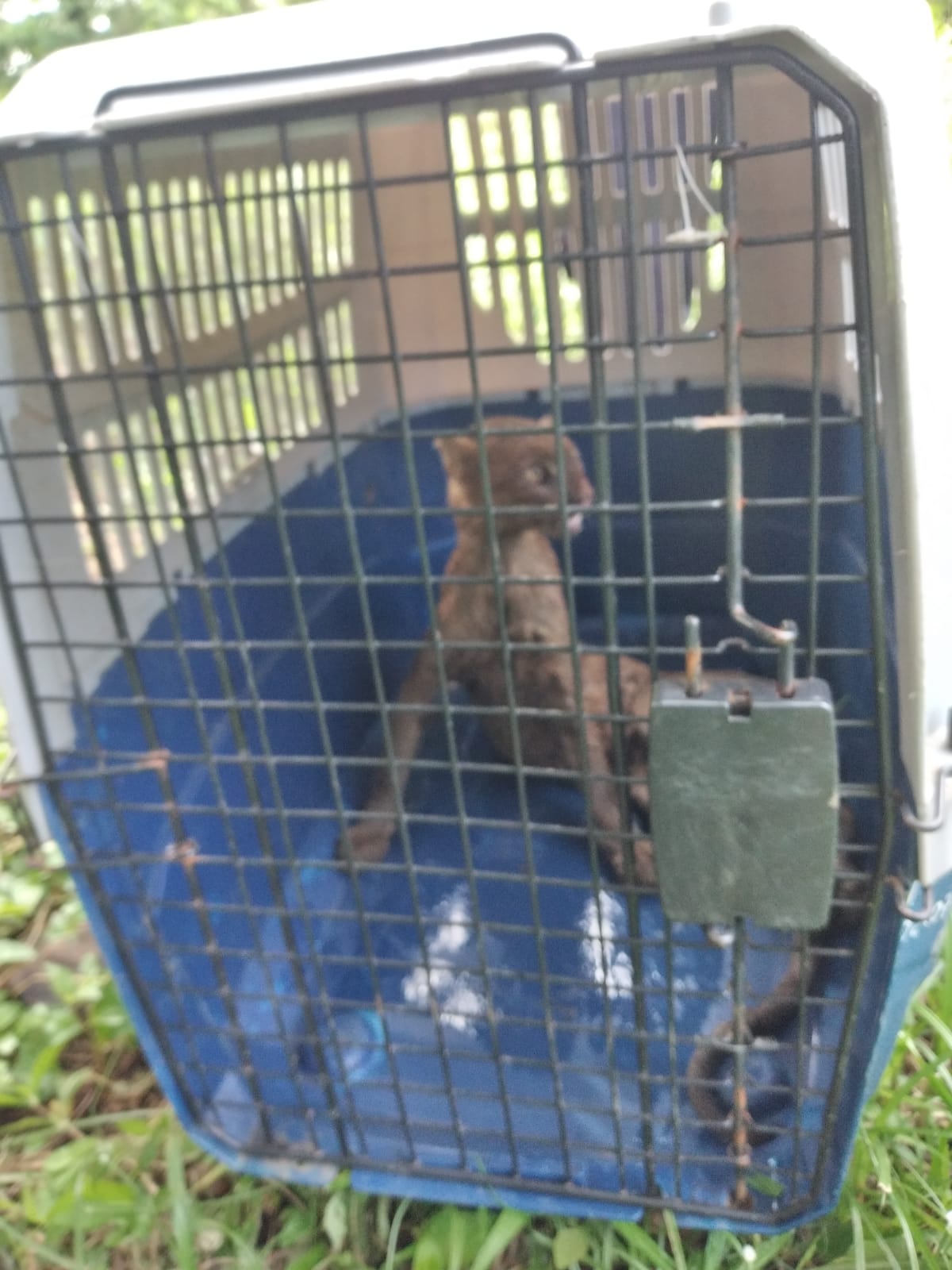 En la mañana de este sábado 4 de junio, unidades de la Dirección Nacional de la Policía Ambiental, Rural y Turística en conjunto con funcionarios de Mi Ambiente fueron avisados por residentes del sector de Sajalice, distrito de Capira, de una fauna silvestre ( Yaguarandi) atrapada.