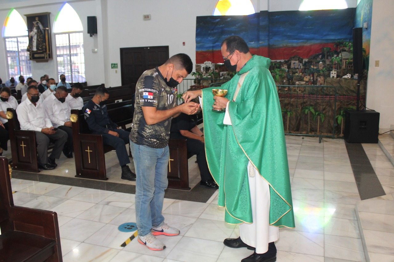 Con una misa en la Capilla San Miguel Arcángel, el Departamento de Protección y Seguridad de la Policía Nacional, celebró este miércoles 8 de junio sus 16 años de creado. Las unidades policiales adscritos a ese departamento de seguridad, celebraron con dianas, fuegos artificiales, y juegos deportivos, sus 16 años en un ambiente de camaradería y sana diversión. También entregaron canastas con víveres a familias humildes del corregimiento de Pedregal y canastilla al primer bebé nacido para esa fecha en la maternidad del Hospital Santo Tomás. El 8 de junio del 2006, fue creado el Departamento de Protección y Seguridad, cuya misión es brindar protección a Personas Muy Importantes (PMI), el cual cuenta con hombres y mujeres altamente preparadas con técnicas acorde con las funciones que realizan. |