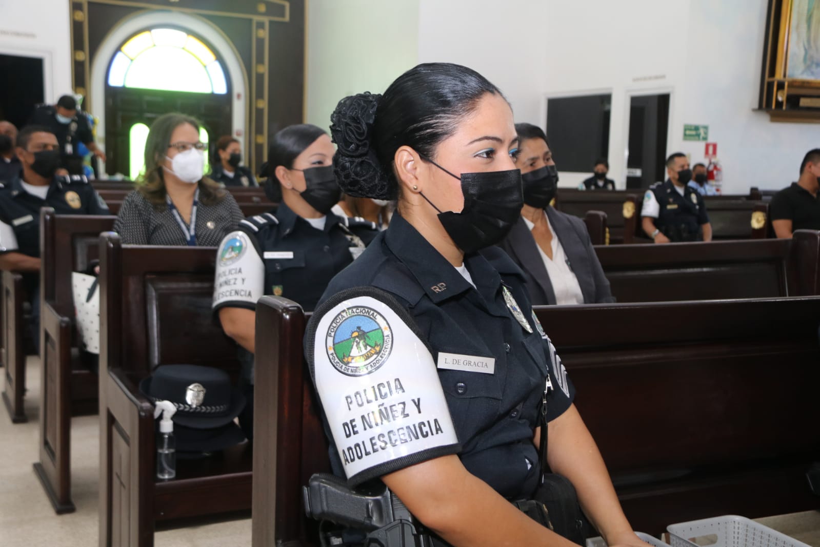 Las unidades de la Policía Nacional de servicio en la Policía de Niñez y Adolescencia como brazo auxiliar de las instituciones y organismos que brindan protección a los niños, niñas y adolescentes panameños, conmemoraron este lunes 13 de junio su 28 Aniversario. Con una misa de acción de gracias en la parroquia San Miguel Arcángel, ubicada en la sede de la Policía Nacional, en el corregimiento Ancón, unidades pertenecientes a este servicio, agradecieron por esta labor diaria en beneficio de los niños y adolescentes. El capellán de esta institución Edgar Flores, oficio la ceremonia religiosa y felicitó a cada uno de los uniformados por tan incansablemente trabajo realizado con el fin de proteger a los menores de los diversos riesgos que los rodean. A la actividad asistieron miembros del Directorio, oficiales, clases y agente, además de fiscales del Ministerio Público, Jueces Especializados de Niñez, autoridades locales. Como invitado especial a esta Eucaristía, el Coro de Niñas de Malambo, deleitó a los presentes con sus voces de ángeles. La Mayor Ilka Prado, jefa encargada este servicio indicó la importancia del respaldo de las autoridades en cada una de las gestiones, tomando en cuenta que se trata de un trabajo en conjunto. El 11 de junio de 1994 se crea la Policía de Niñez y Adolescencia, el cual es un cuerpo encargado de auxiliar, colaborar y coordinar con las autoridades y organismos destinados por el estado a la educación, prevención, protección y rehabilitación de los menores de edad |