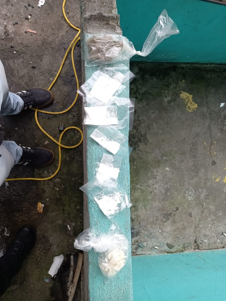 Mientras que en un lote baldío unidades policiales dieron con el hallazgo de 40 municiones cal. 223, 50 municiones cal. 9mm, 1 bolsas ziploc, que contiene hierba seca que se presume sea sustancia ilícita, 2 bolsitas de tamaño que contiene hierba seca, 2 bolsitas transparente contentiva de polvo blanco, 10 fragmento de sustancia sólida de color blanca, se presume sea droga, 1 pesas digital color gris.