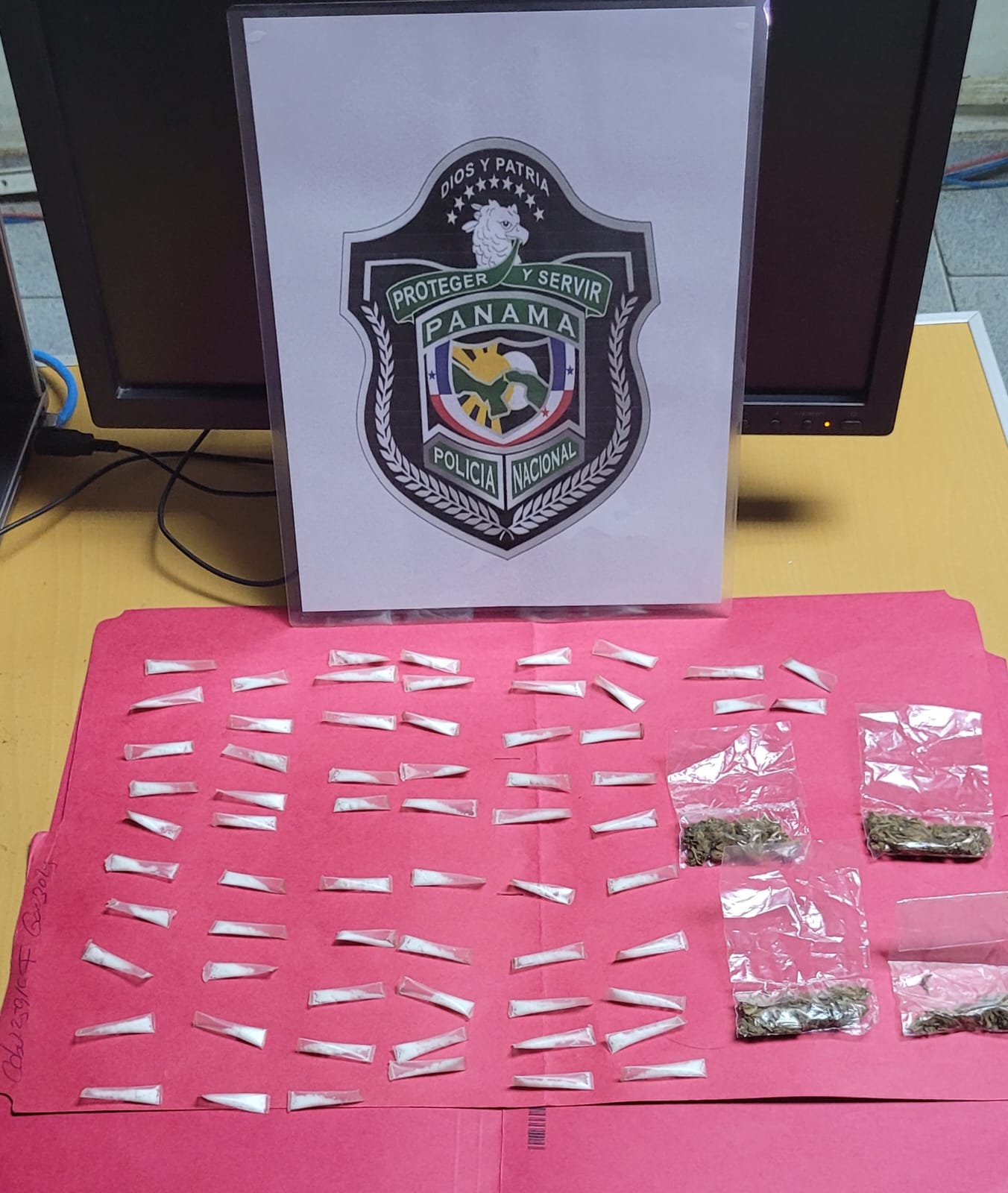 Durante la acción policial se decomisó sesenta y tres carrizos plásticos transparentes con contentivos de polvo blanco con presunta cocaína, cuatro sobres sellados en sus extremos con contentivos de hierba seca, se presume sea marihuana.