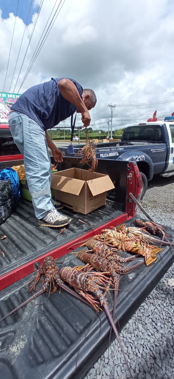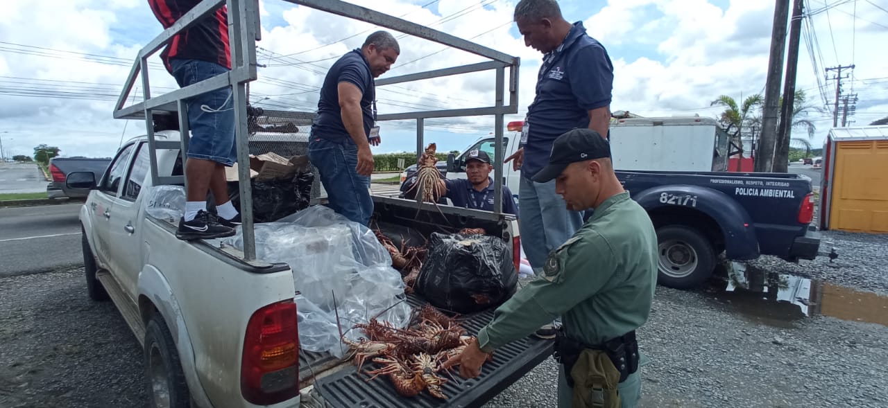 Un total de 41 langostas fueron decomisadas por unidades de la Policía Ambiental en conjunto con funcionarios de la Autoridad de los Recursos Acuáticos de Panamá mediante un operativo desarrollado en el corregimiento de Pacora.
