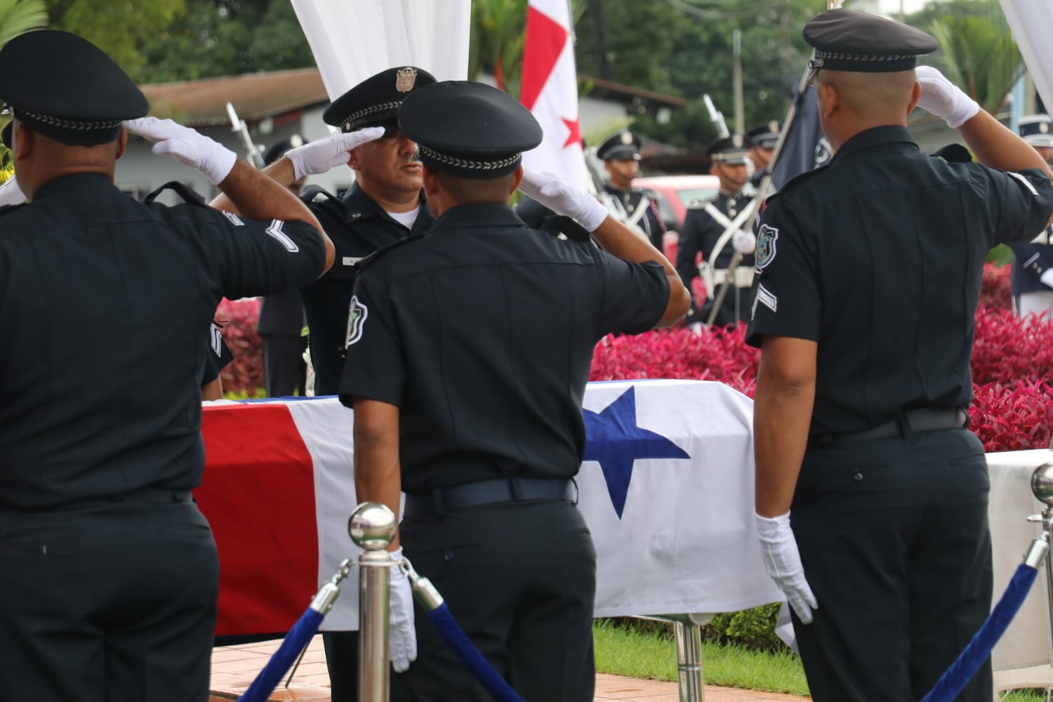 El ministro de Seguridad, Juan Manuel Pino; y el Director General de la Policía Nacional, John Dornheim, Subdirector General de la Institución, Simón Henríquez, Directores de los estamentos de seguridad, miembros del directorio policial, también rindieron honores “post mortem” , y presentaron sus condolencias a sus familiares. |