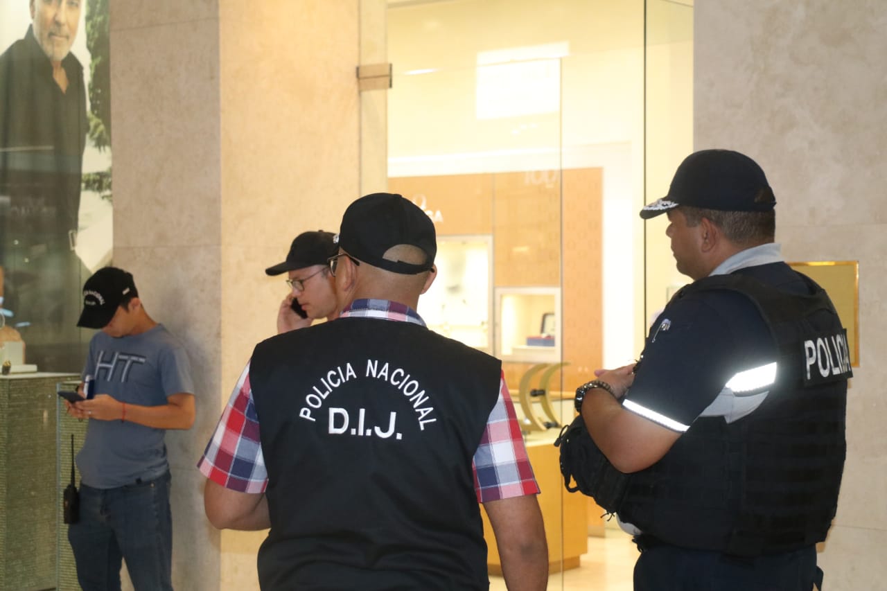 Unidades policiales en conjunto con el Ministerio Público le dan seguimiento a un vehículo plenamente identificado en el robo a una joyería ubicada en el centro comercial de Multiplaza, la noche de este sábado, 19 de noviembre del presente año. Sujetos ingresan al centro comercial Multiplaza y luego roban en una joyería llevándome algunos artículos de la misma. El subcomisionado, Jaime Toledo, jefe de la Zona Policial de San Francisco, dijo que a esta hora las investigaciones continúan desde la verificación de las cámaras de vigilancia, hasta los operativos para dar con los implicados en este robo. |