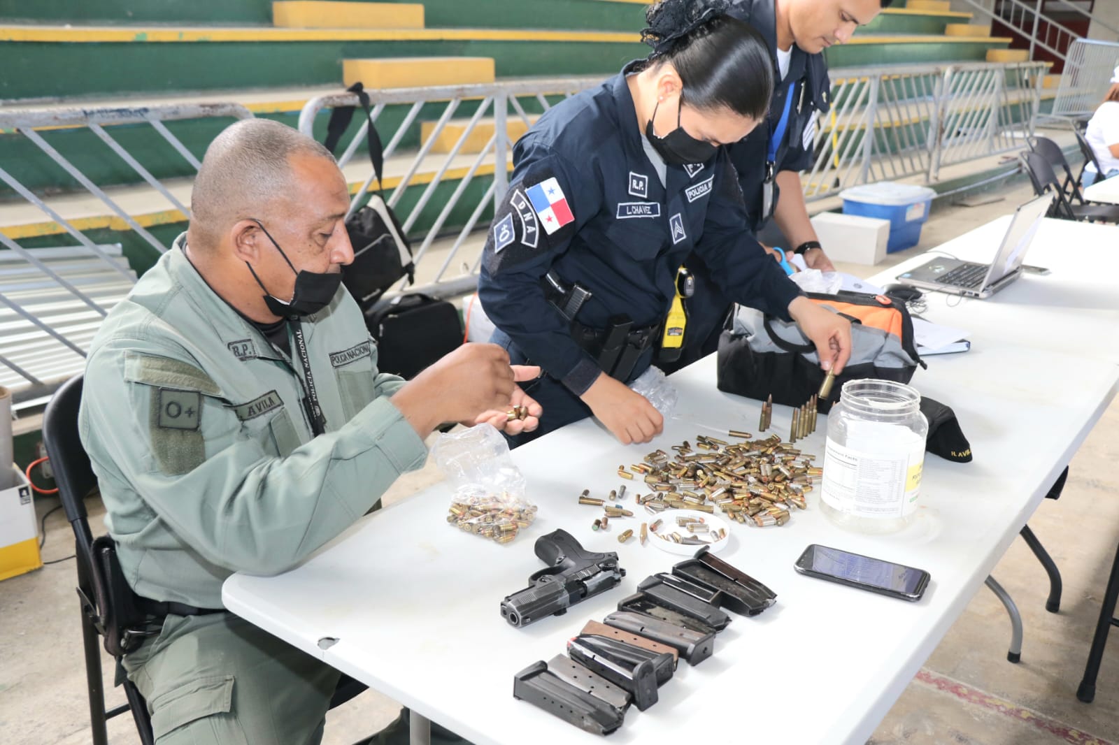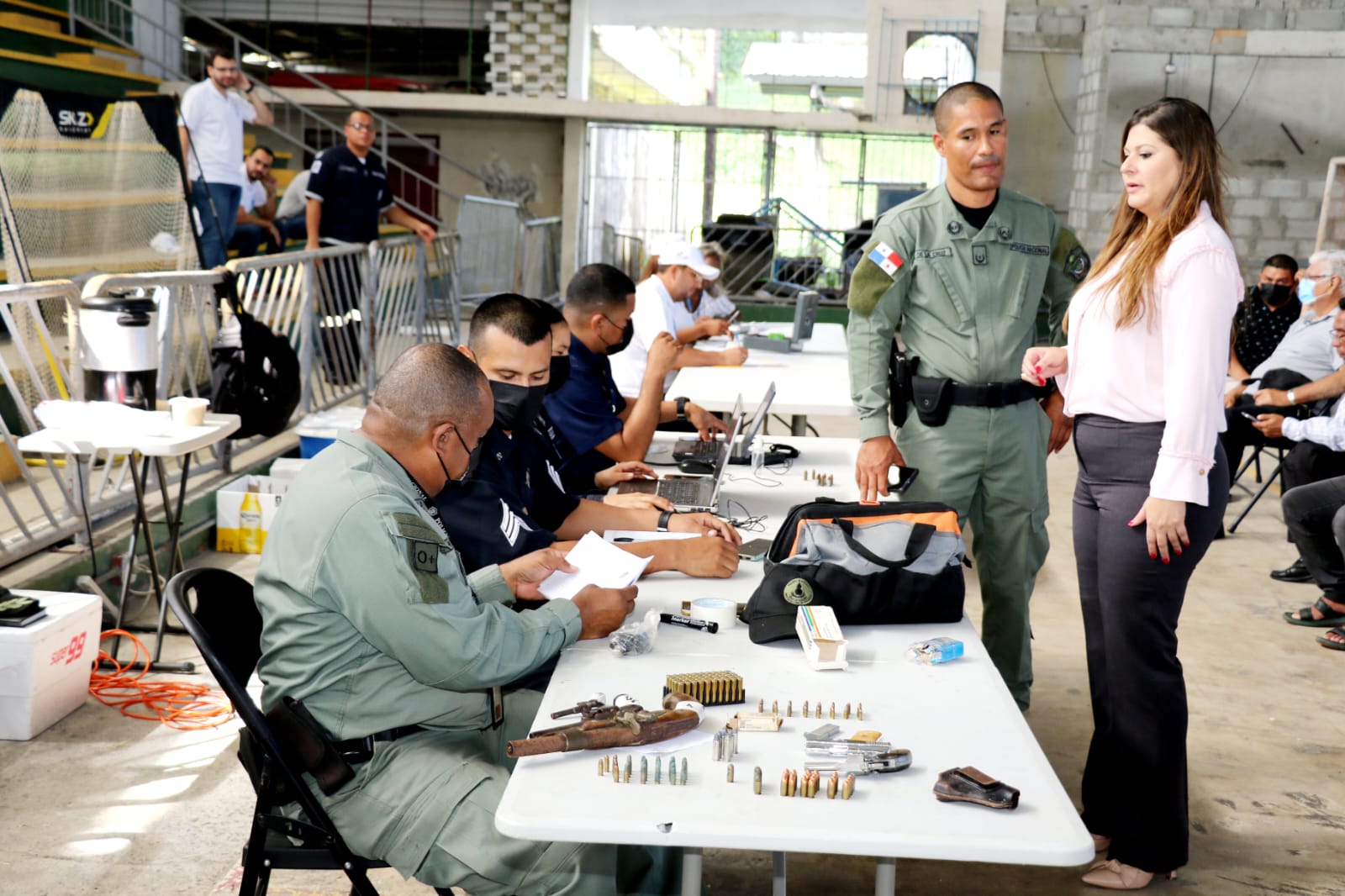 Unas 24 armas de fuego, 1,831 municiones, 33 proveedores, 13 explosivos y 2 accesorios fueron reunidas por la Gobernación de Panamá y la Policía Nacional a través del Programa “Pacificando Mi Barrio” que se desarrolló en el Gimnasio Eugenio “Yuyín” Luzcando de Betania. Las armas y municiones fueron entregadas de manera voluntaria por personas a las cuales a cambio se les hizo entrega de la suma de B/. 9,609 en vales y bonos canjeables en supermercados, restaurantes y otros tipos de comercios. La actividad es totalmente confidencial y no se realizan preguntas a las personas que entreguen las armas y municiones. Cabe recordar que este programa forma parte del acuerdo interinstitucional de Cooperación y Asistencia Técnica entre el Ministerio de Gobierno y el Ministerio de Seguridad Pública, con miras a disminuir la presencia de armas, municiones y explosivos en las calles del país. |