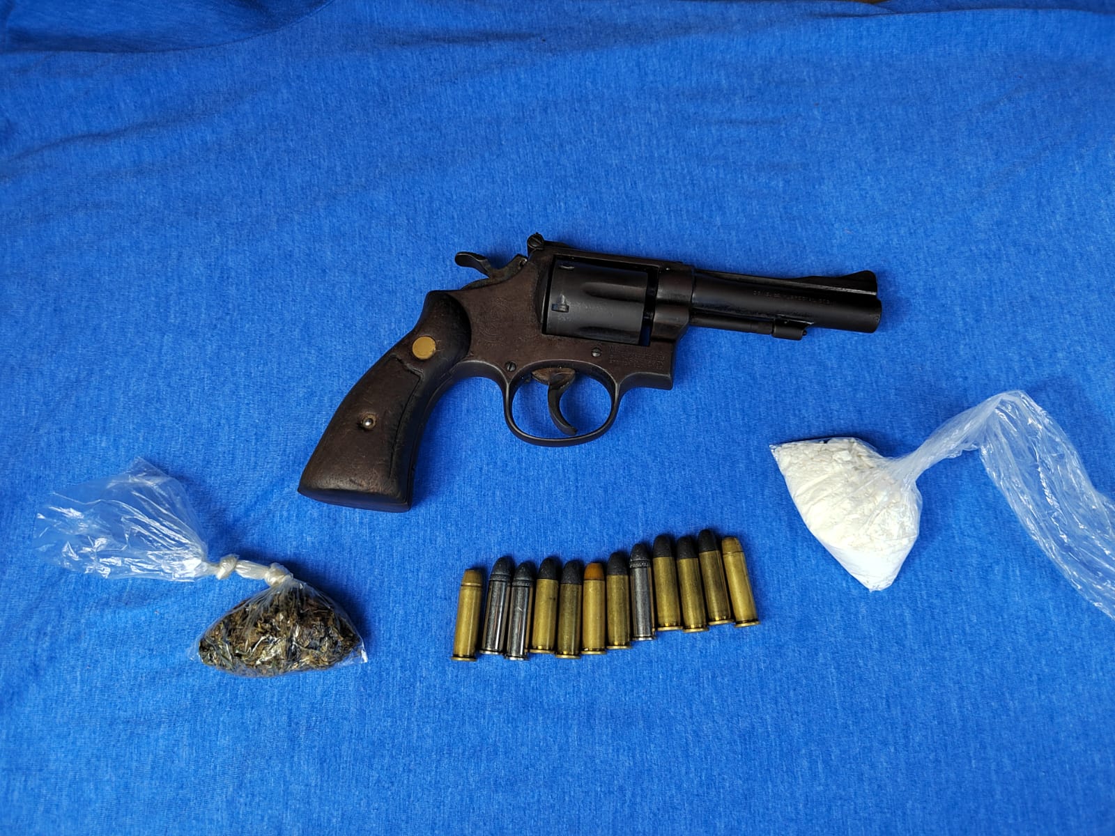 En una residencia, ubicada en Altos del Ángel sector de Nuevo Tocumen fue aprehendido un ciudadano de 24 años quien mantenía en su poder un arma de fuego calibre 38 y dos bolsas con presunta sustancia ilícita conocida como marihuana y cocaína.