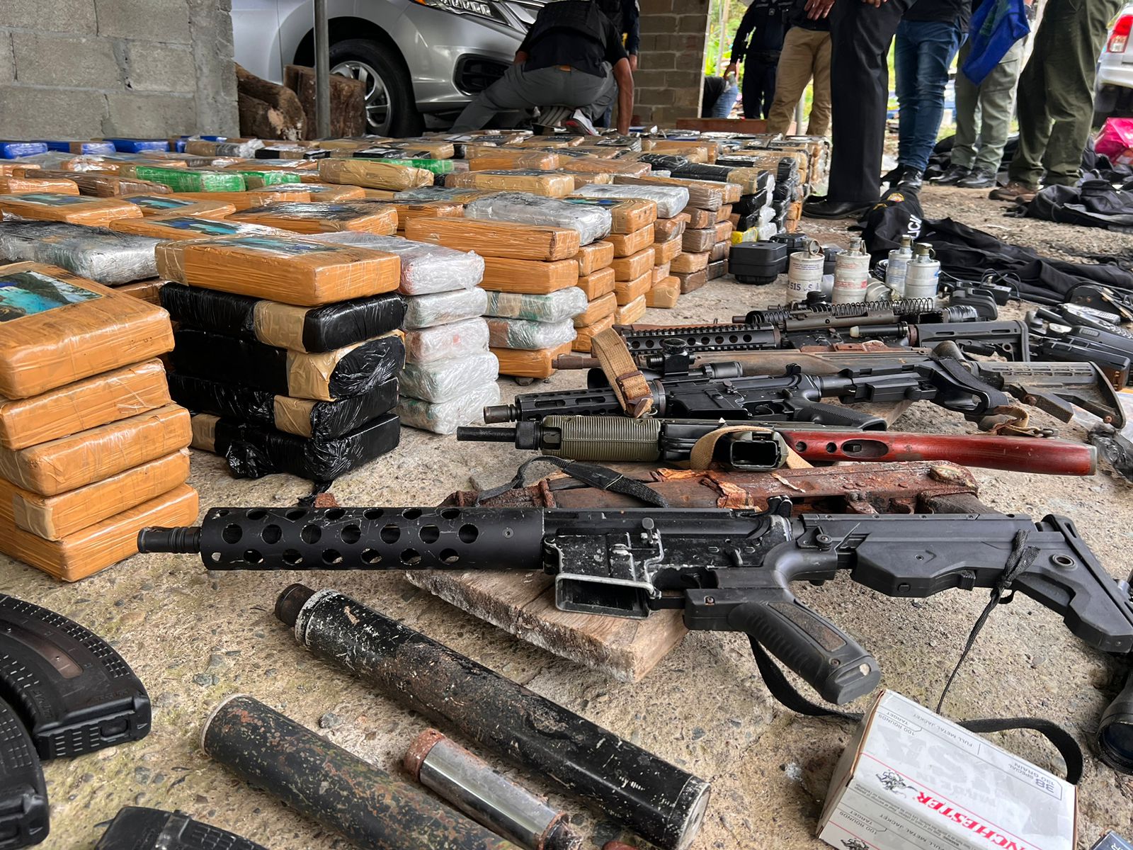 POLICÍA INCAUTA 1,139 PAQUETES DE PRESUNTA DROGA, ARMAS DE FUEGO Y MUNICIONES EN COLÓN
