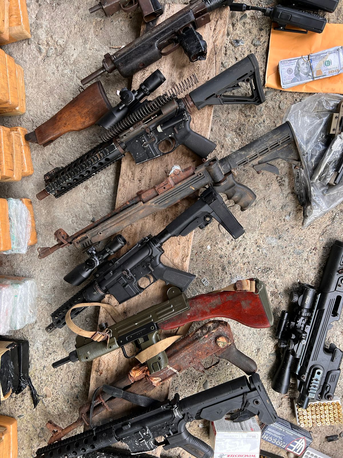 La Policía Nacional a través de las articulaciones operativas en coordinación con el Ministerio Público incautaron unos 1,139 paquetes con presunta droga, unos B/. 9,700 dólares, en billetes de 100, además de unos 6 fusiles, dos pistolas, chalecos, dos Subametrallora, tres silenciadores adaptables a las armas de fuego y 11 proveedores, un explosivo tipo granada, 6 latas de gas pimienta, 26 proveedores de fusil, así como varios chalecos antibalas, gran cantidad de municiones distribuidas en tanques y en sus cajas respectivas, una pesa digital y más de 11 sobres con presunta drogas preparados para la venta clandestina. Las investigaciones determinan que, la Operación Antidrogas se realizó en la Comunidad de Nuevo México, Sabanitas de la provincia de Colón, donde se aprehende a un ciudadano panameño, de 31 años de edad, también se decomisaron radios portátiles de comunicación, luz para escolta de vehículo, entre otros indicios que forman del delitos relacionados al delito de Narcotráfico y la Seguridad Colectiva. El Subdirector General de la Policía Nacional, Simón Henríquez se refirió a esta operación donde fue aprehendida una persona, a su vez reiteró que la Institución Policial mantiene los patrullajes urbanos y rurales, así como también otras operaciones simultáneas en la provincia de Colón, que se encuentran tras la pista de los transgresores de la Ley, quienes serán puestos a órdenes de las autoridades competentes. |