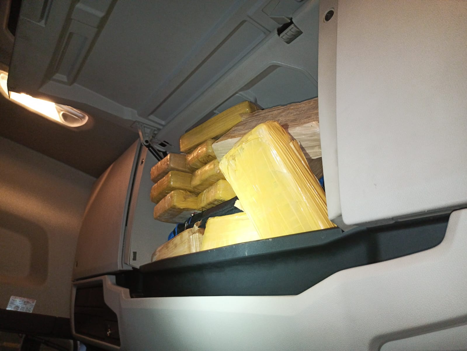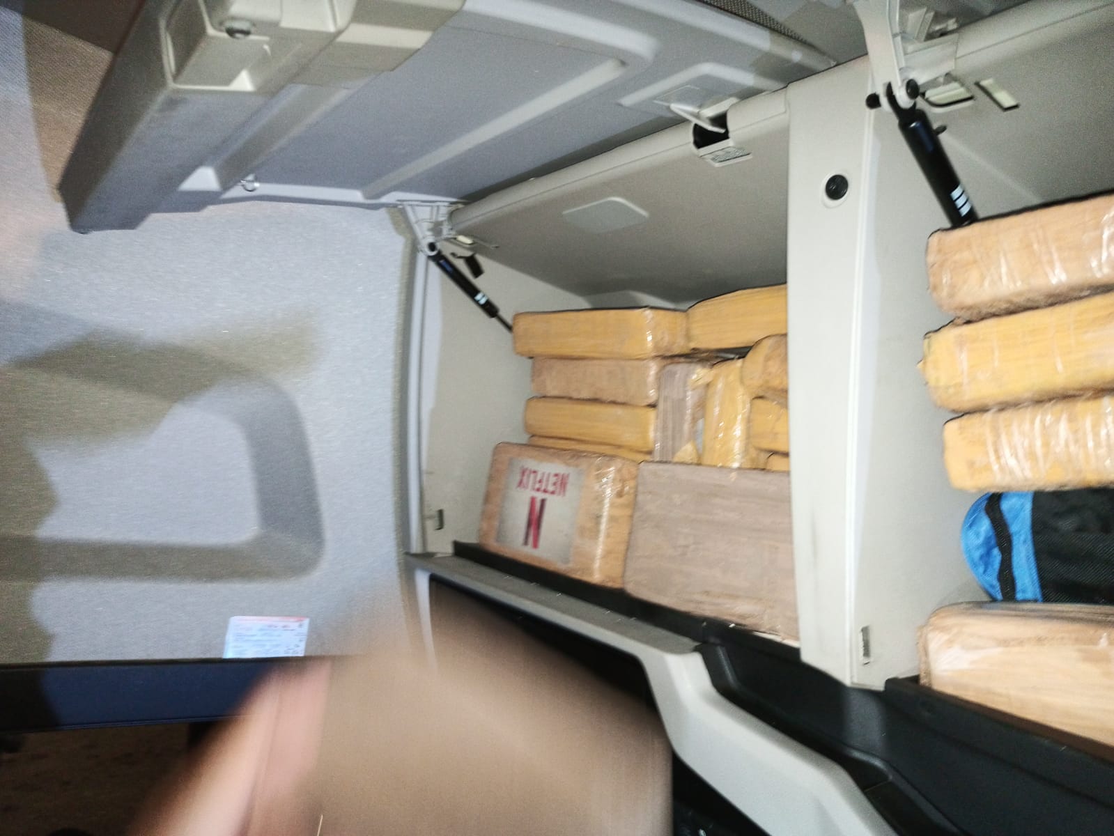 POLICÍA INCAUTA 65 PAQUETES DE PRESUNTA DROGA Y APREHENDE A CONDUCTOR DEL ARTICULADO
