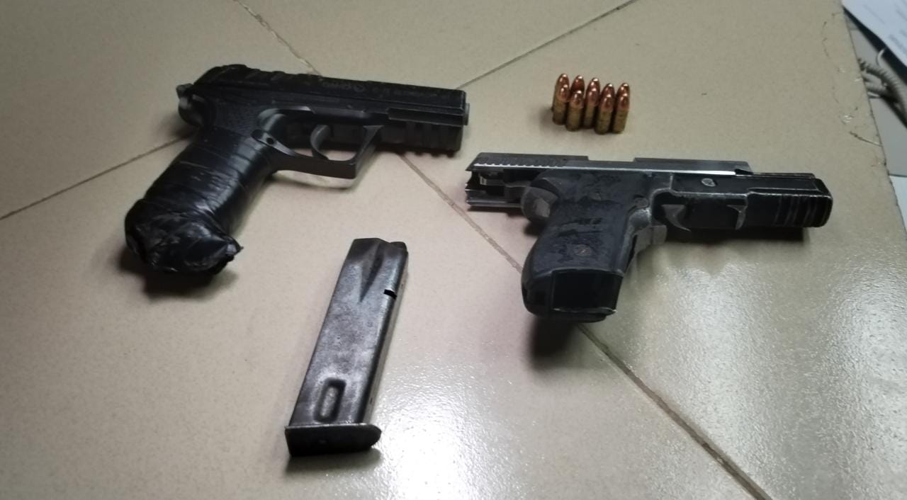 Unidades de la Policía Nacional a través del Servicio Policial Motorizado Lince aprehenden a dos personas en posesión ilícita de armas de fuego, luego que el conductor de un vehículo particular, realizara un giro indebido, en La 5 de Mayo informó el Comisionado Jorge Bryant. Al realizarse la revisión del vehículo en base al artículo número 325 del Código Procesal Penal, se encontraron dos pistolas dentro del compartimiento central del auto, una de las cuales resultó ser una réplica y la otra una pistola con 19 municiones. La acción policial se produjo frente a las instalaciones de la Policlínica Dr. Manuel Ferrer Valdés, ubicado en la Avenida Justo Arosemena. Ambas personas junto a los indicios fueron puestas a órdenes de las autoridades judiciales para deslindar las responsabilidades. |
