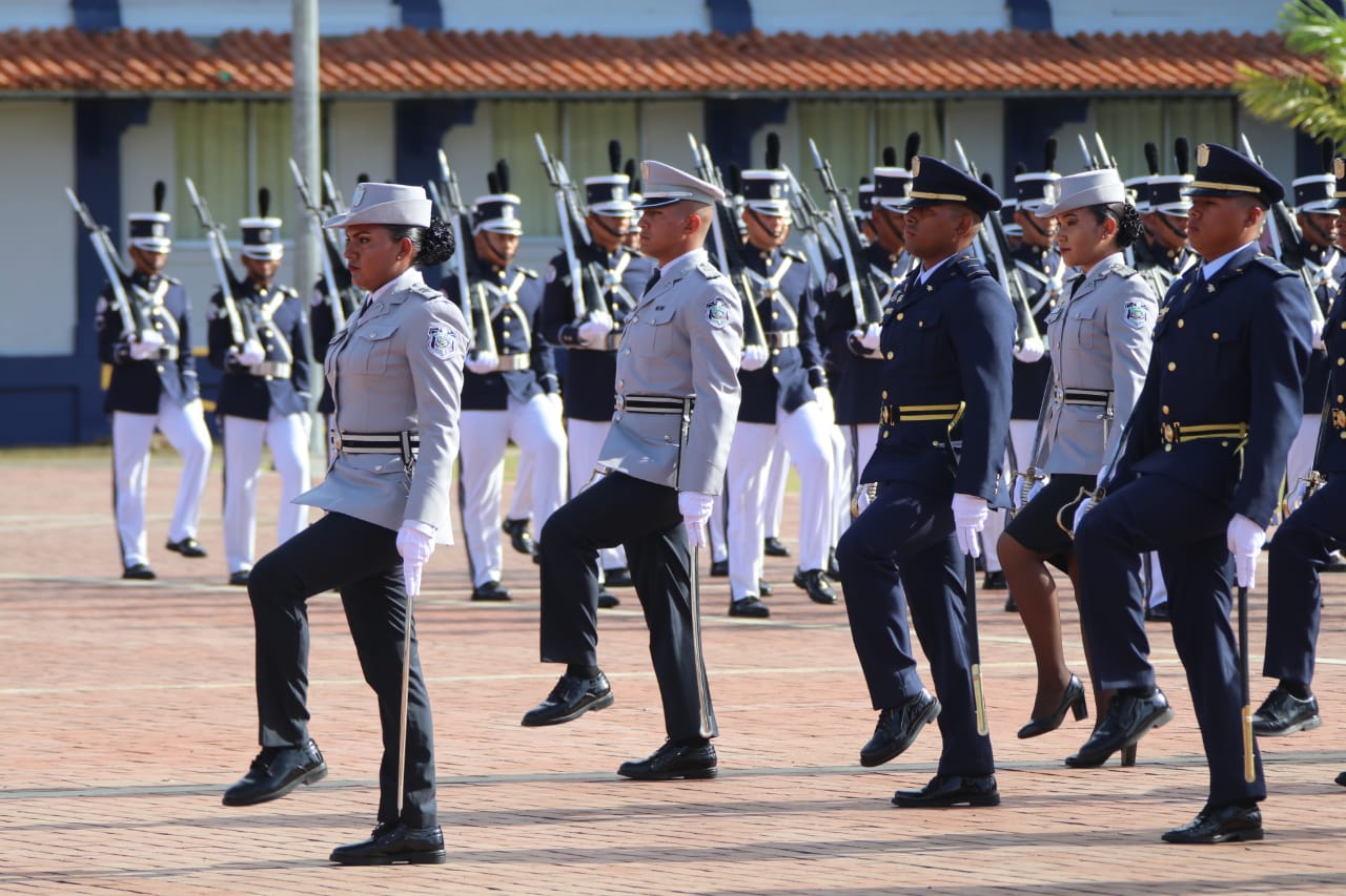 Un total de 90 alféreces se gradúan como subtenientes de la Promoción XXII General Tomás Herrera, en la ceremonia realizada en la Escuela de Oficiales de Policía Dr. Justo Arosemena, ubicada en el Fuerte Davis, en la provincia de Colón. La promoción conformada por 90 nuevos subtenientes se dividen en 45 oficiales que se formaron en la ESOPOL, de ellos 6 femeninas y 39 masculinos, de estos, 1 de República Dominicana, 1 de Costa Rica, 1 del SPI, 1 del Senan y 4 del Senafront. A esta ceremonia de graduación se unen 45 subtenientes de los diversos estamentos de seguridad del estado, egresados de diferentes centros de formación del extranjero como lo son: Brasil, Estados Unidos, México entre otros. Estos 90 jóvenes fueron juramentados por el Presidente de la República, Laurentino Cortizo Cohen, y recibieron de manos del mandatario de la nación, el sable que simboliza el mando, honor, valentía y compromiso con la Patria. El Director General de la Policía Nacional, John Dornheim, exhortó a los 90 nuevos oficiales a servir a la Patria con integridad, respeto a la democracia y estricto apego a la Ley. |