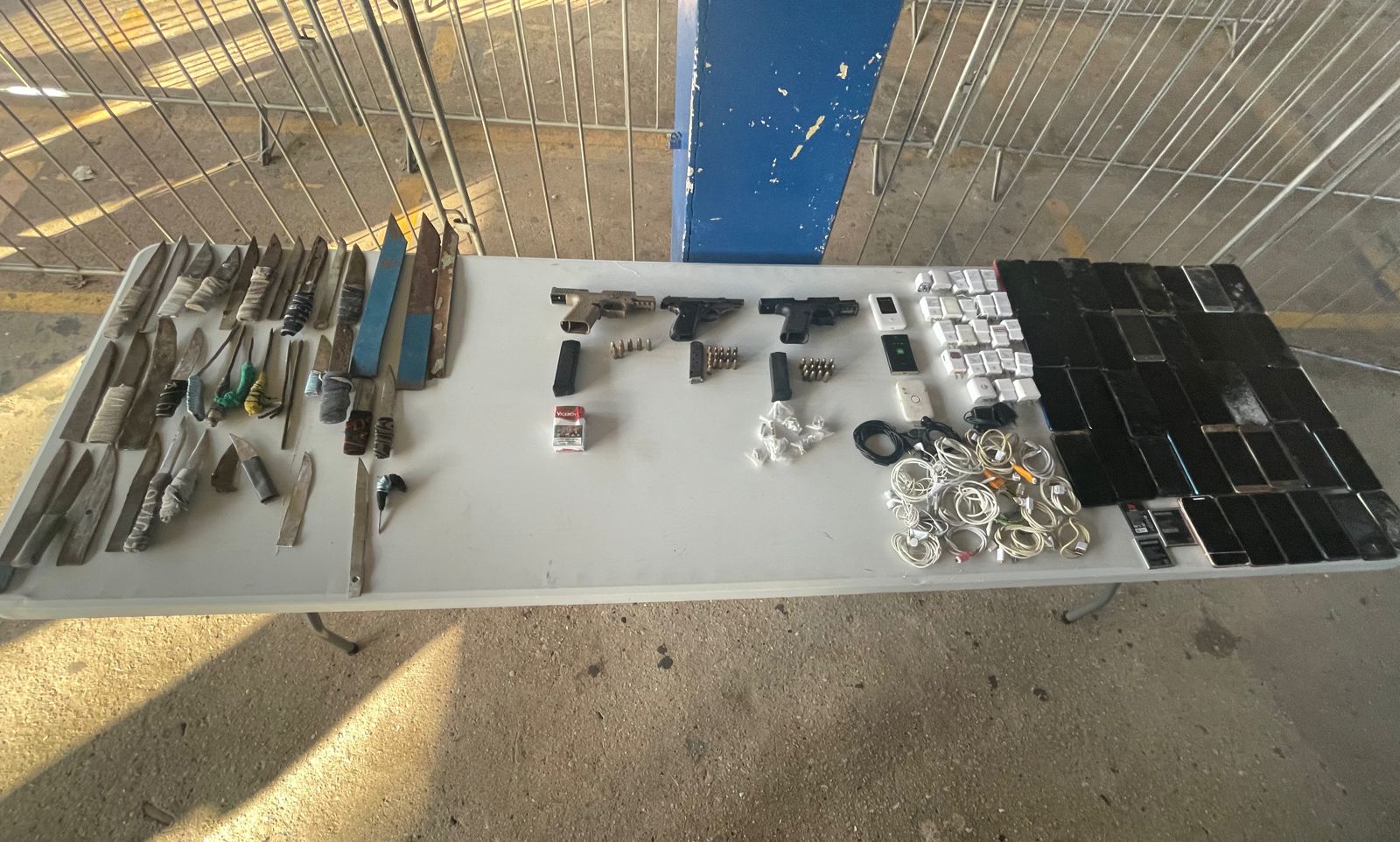 Tras el desarrollo de la Operación Armagedón VI, unidades de la Policía Nacional incautan tres armas de fuego, dosis de presunta droga, además de 37 municiones, tres proveedores, 110 objetos punzocortantes, artículos electrónicos, cigarrillos, entre otros indicios que son prohibido en el Centro Penitenciario, La Nueva Joya. El Director General de la Policía Nacional, John Dornheim y su equipo de trabajo encabezan las acciones de requiza en el Operativo ARMAGEDÓN VI, conformado por un contingente de 500 unidades, quienes realizaron sus labores de rastreo y registro para detectar estas armas de fuego entre otras armas blancas, las cuales son potenciales indicios de cometer delitos que atentan contra la vida de los privados de libertad, así como también de funcionarios y unidades que laboran en este Penal. La Policía Nacional en coordinación con el Ministerio Público y el Sistema Penitenciario se mantienen realizando investigaciones para neutralizar toda amenaza o grupos de privados de libertad que intimidan y generen reyertas que atenten contra la vida de la población carcelaria. |