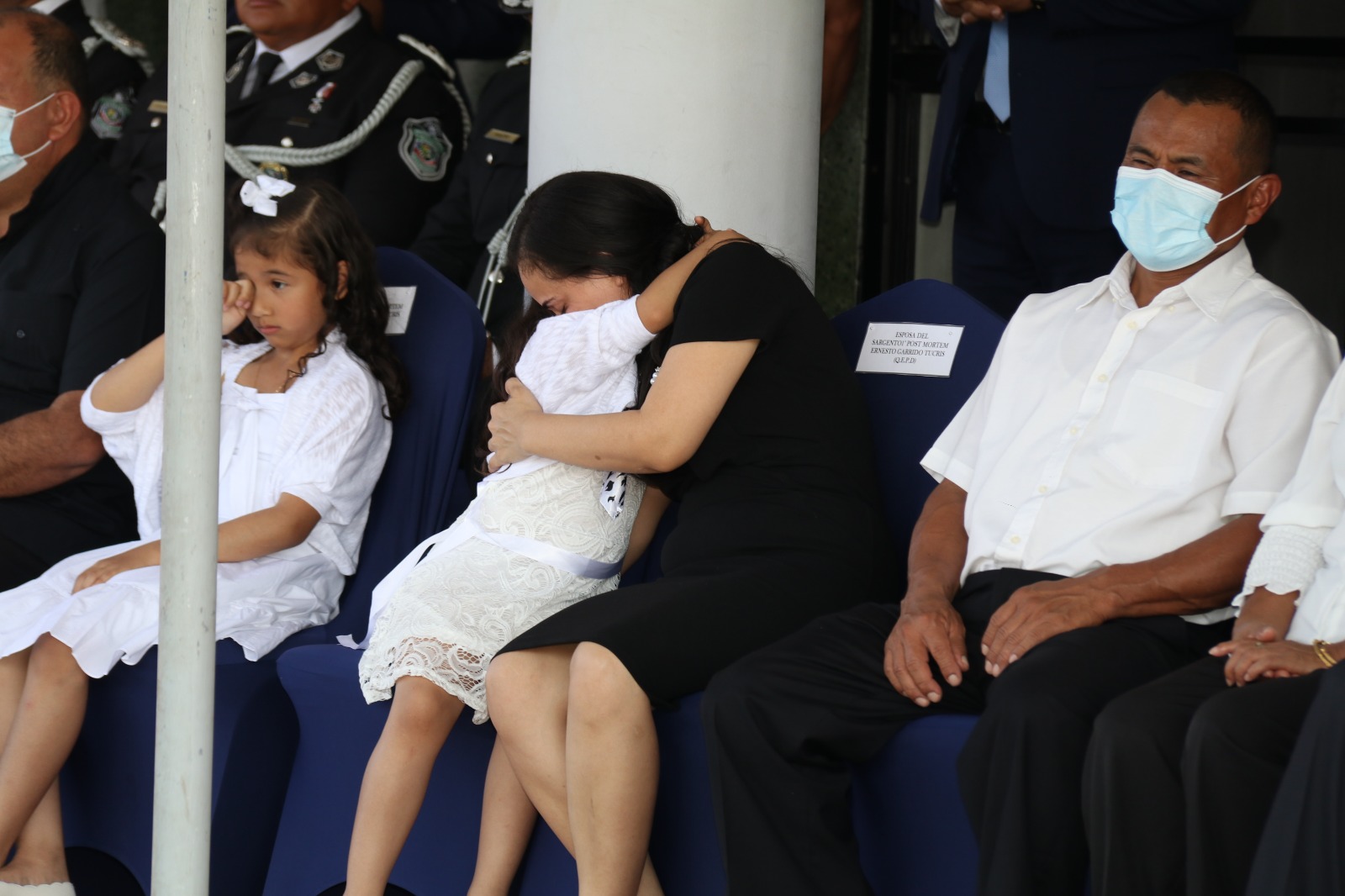 Con una ceremonia realizada en la sede de la Policía Nacional, que contó con la presencia del Vicepresidente de la República, José Gabriel Carrizo, el Ministro de Seguridad Pública, Juan Pino y el Director General, John Dornheim, se le dio el “hasta luego” al Sargento 1ero. Post Mortem Luis Ernesto Garrido Tucris. Con 13 años, 6 meses y 11 días de servicio, el sargento Garrido Tucris, se convierte en el segundo caído en cumplimiento del deber en el año 2023. En la ceremonia las autoridades presentes encabezadas por el Vicepresidente de la República, José Gabriel Carrizo le presentaron sus condolencias y respeto a sus familiares. “Hoy despedimos con mucha tristeza a un compañero, que demostró sentido de pertenencia y alto compromiso con su trabajo”, dijo el Director General John Dornheim, quien destacó que “a los hombres de honor se les lleva siempre en mente”. Una calle de honor conformada por sus compañeros dio paso al féretro y darle los honores merecidos. En su memoria se dejaron escuchar los 21 disparos de salva, que son dedicados a las unidades caídas en cumplimiento del deber. Familiares, autoridades, miembros de directorio de los estamentos de seguridad, compañeros e invitados, estuvieron presentes para despedirse del Sargento 1ero. Post Mortem Luis Ernesto Garrido Tucris, quien falleció el jueves 23 de febrero, en un accidente ocurrido debajo del puente que conduce hacia Amador. ¡Paz a su alma! |